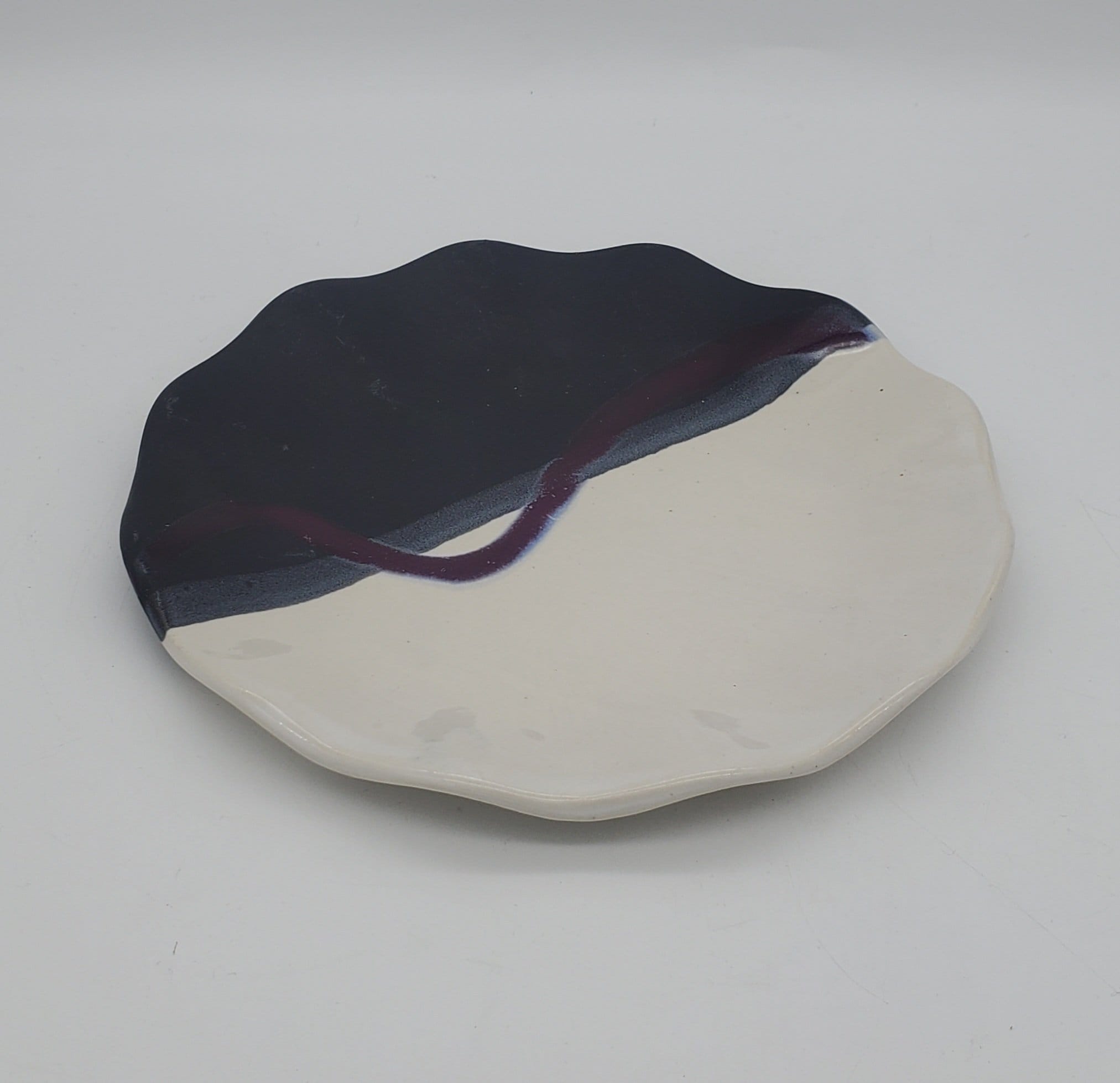Black Matt/White/Purple Splash Ruffled Plate