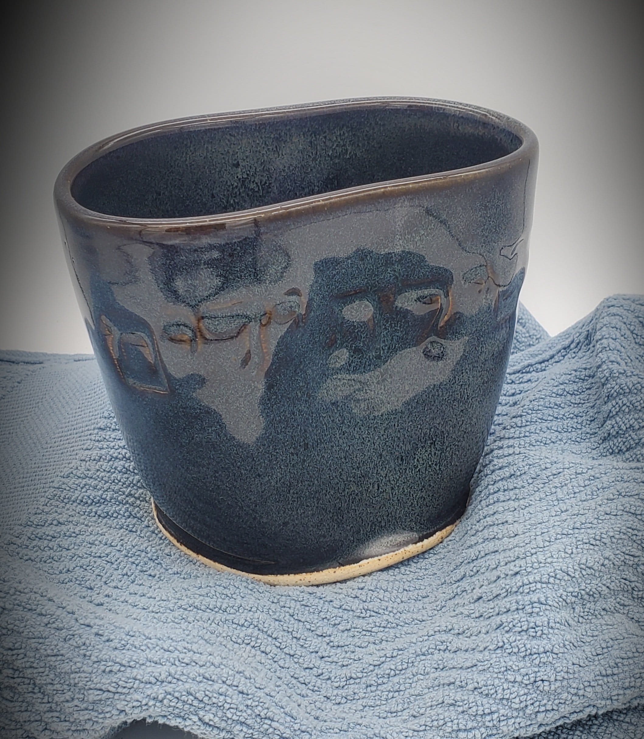 Blue/Brown Airbrushed Handleless Washing Cup