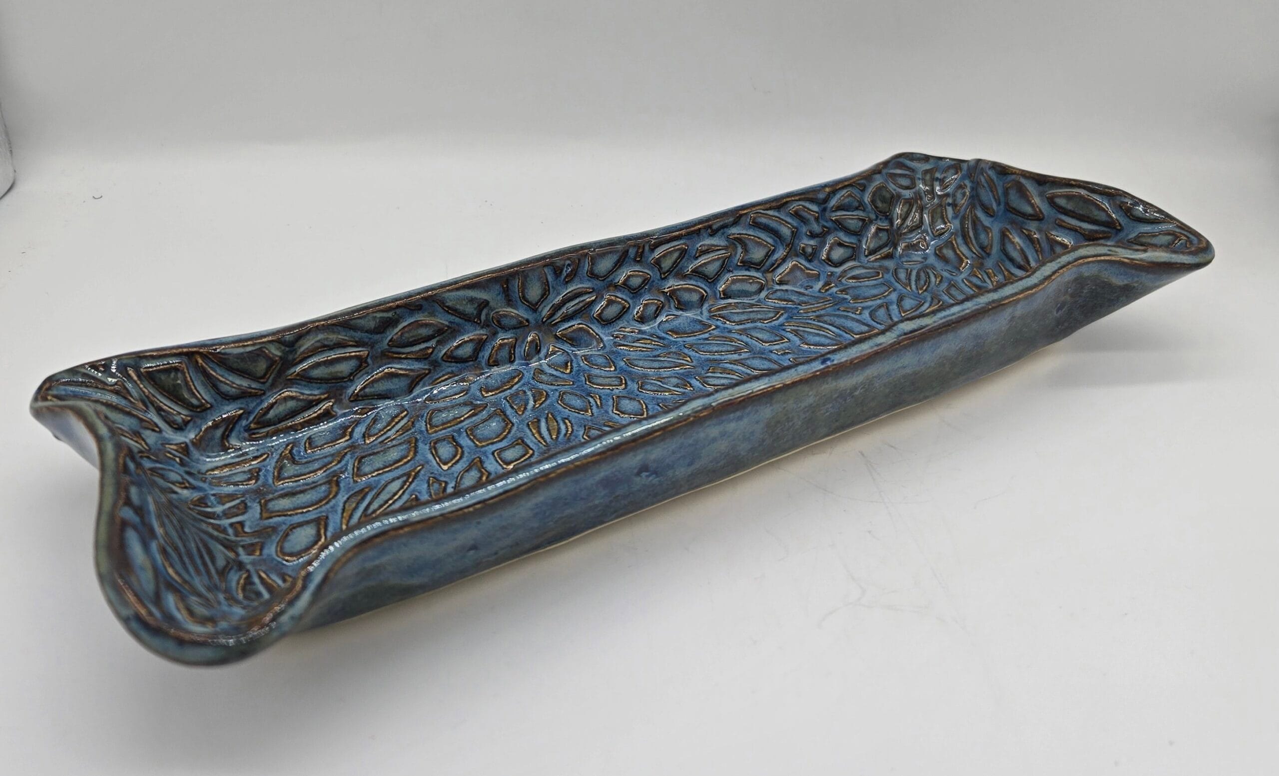 Blue/Brown Leaf Textured Rectangular Deep Dish