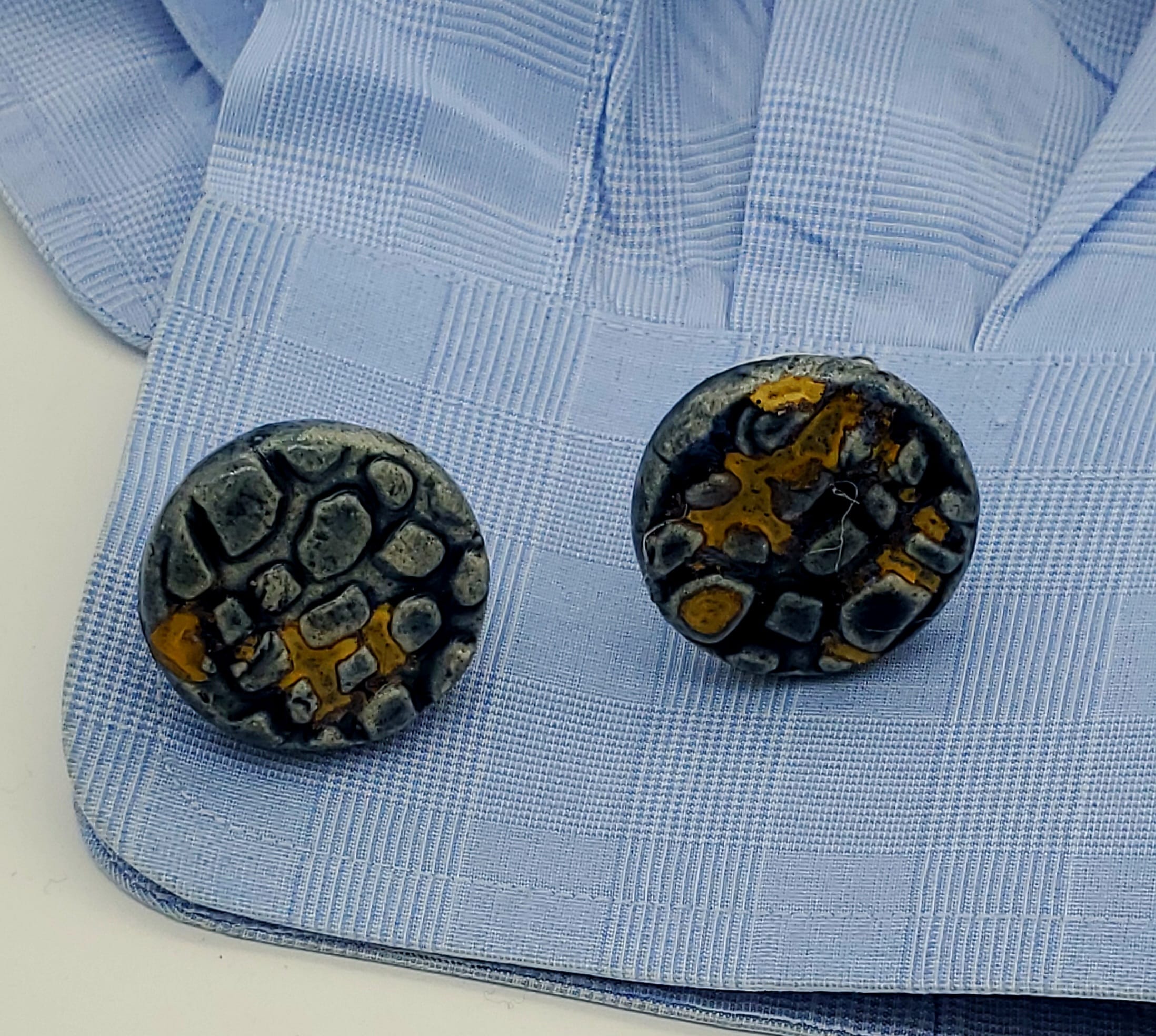 Blue/Gold Textured Round Cufflinks