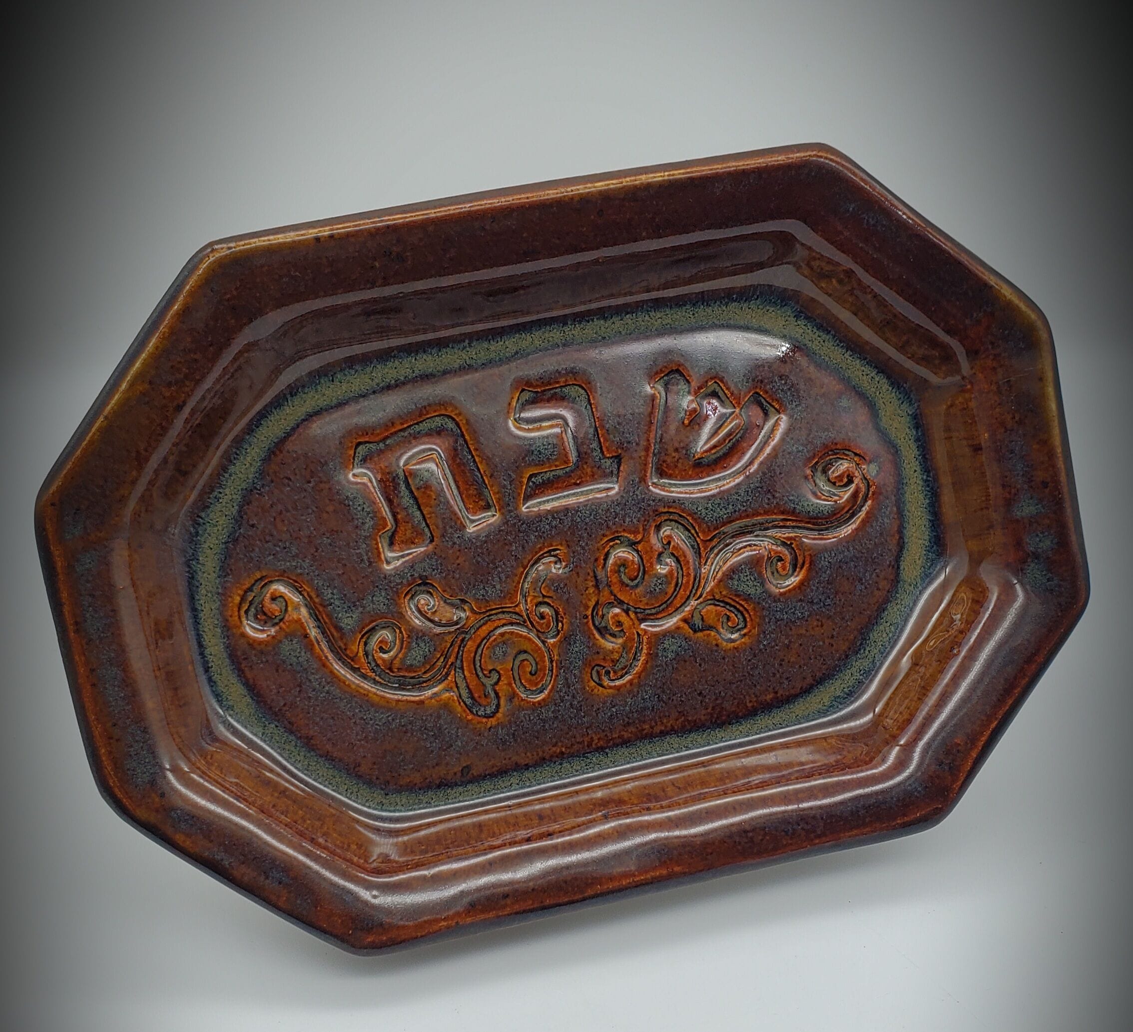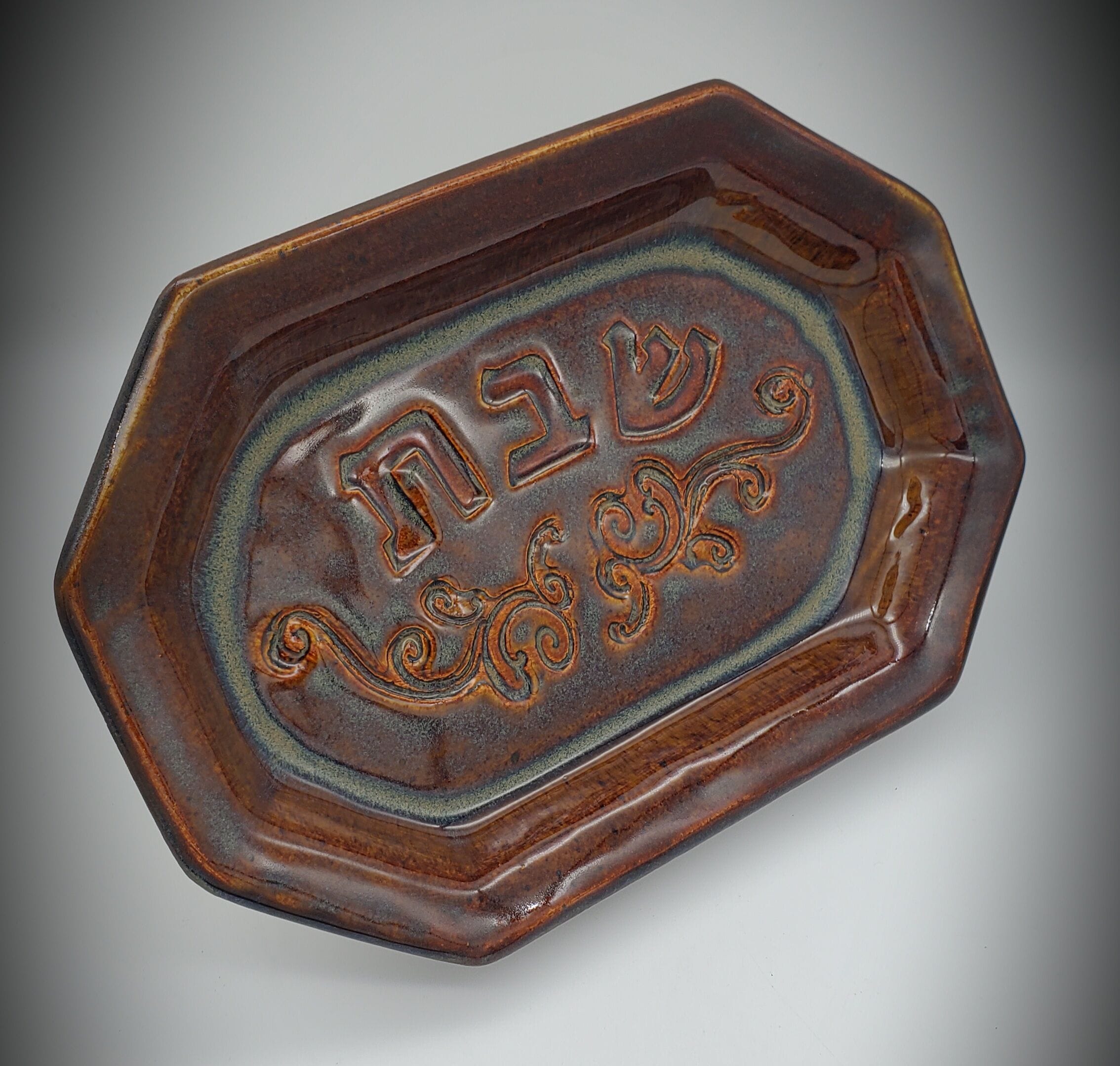 Brown Airbrushed Octagon Shabbos Platter