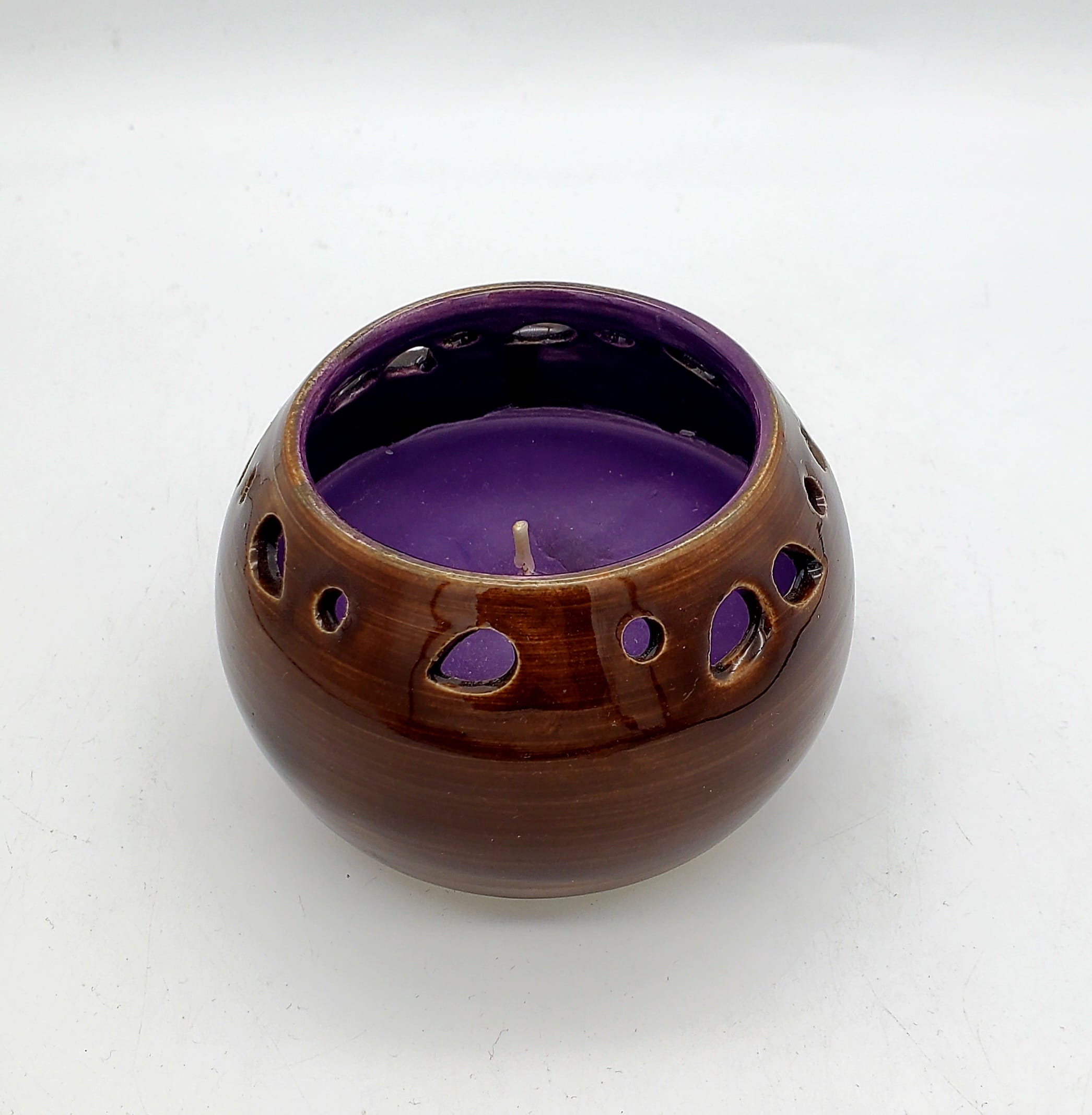 Brown Candle Holder with Purple Lavender Scented Candle quantity