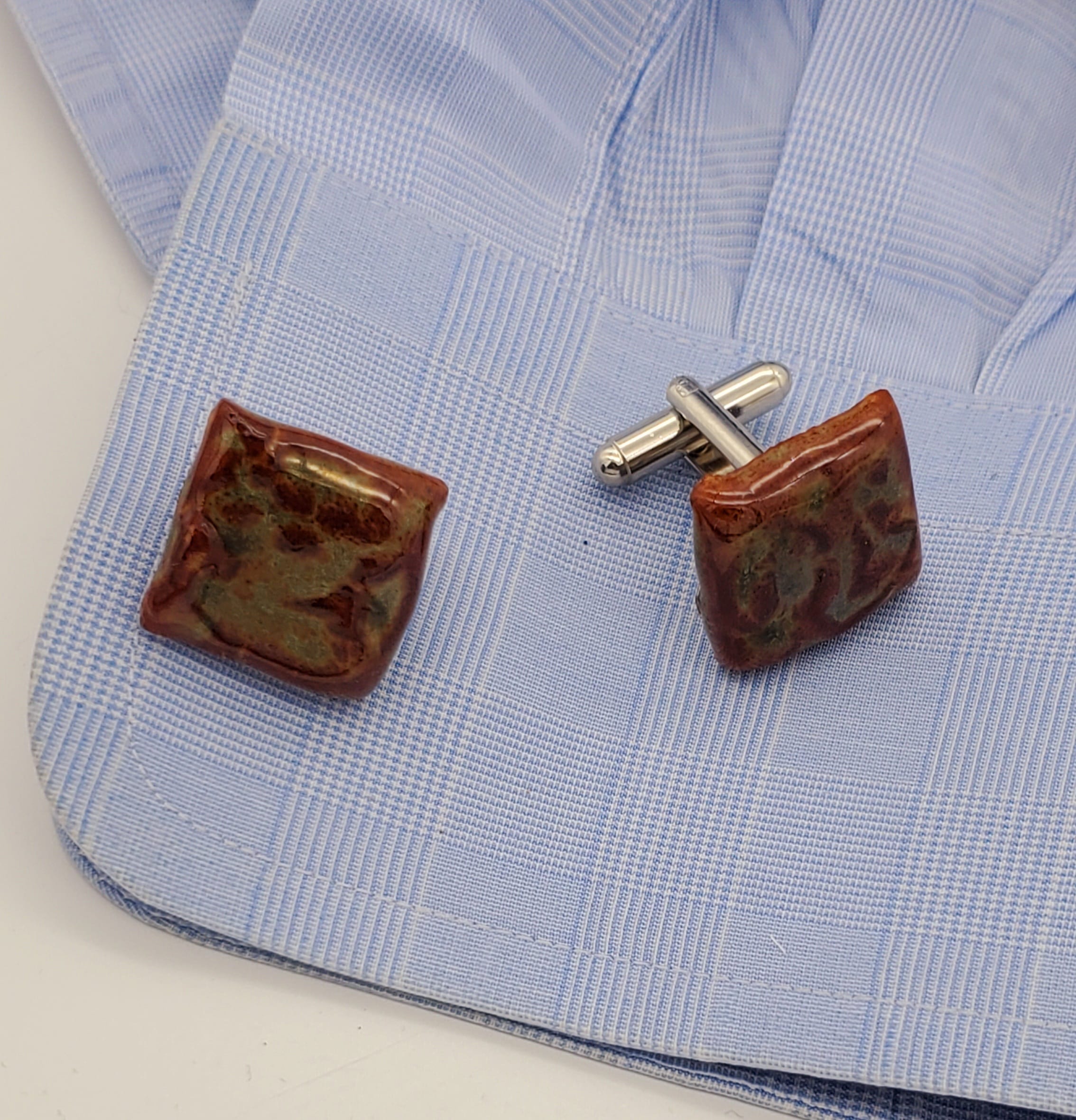 Brown/Green Metallic Textured Square Cufflinks