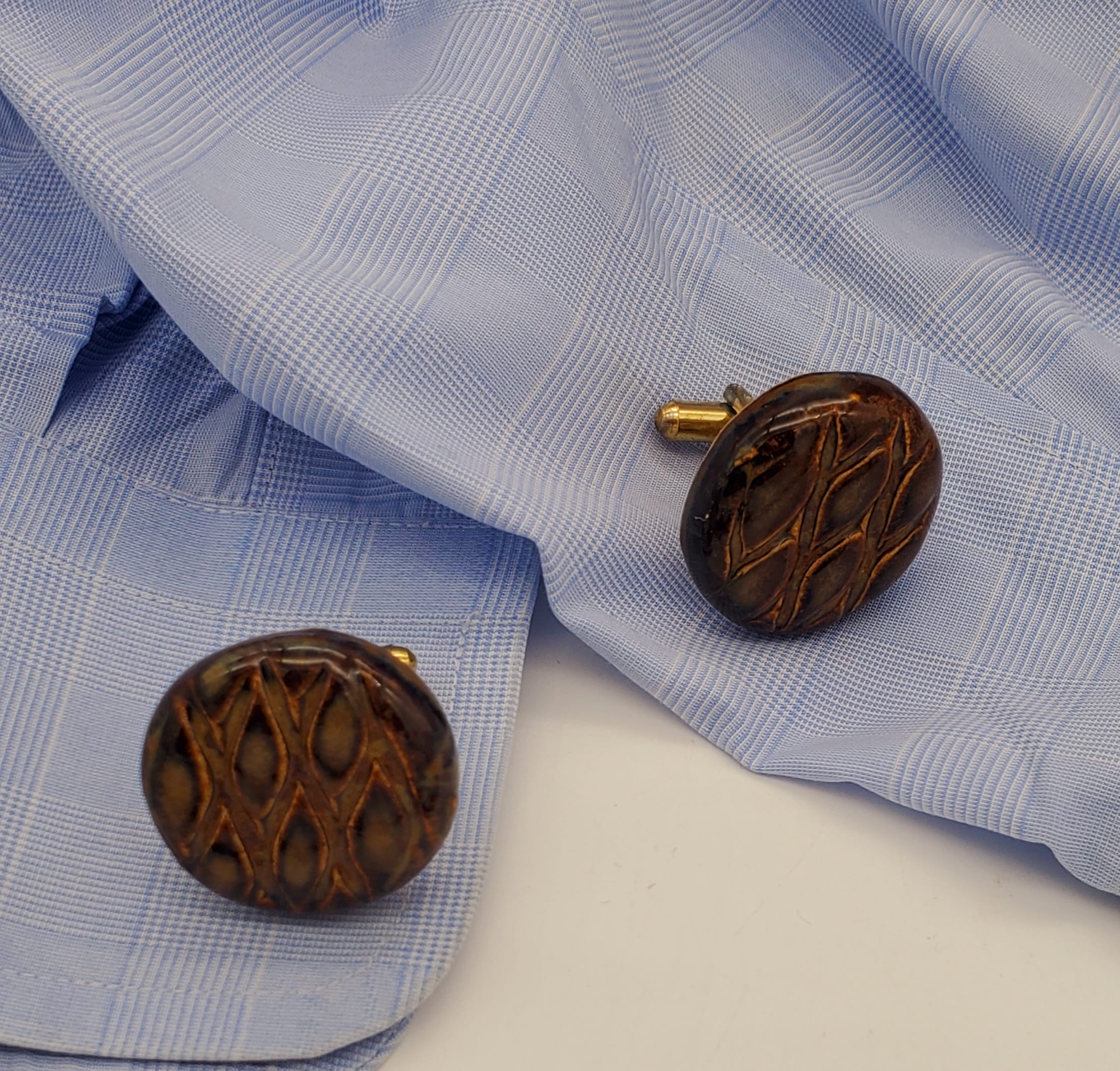 Cream/Sandy Textured Airbrushed Round Cufflinks