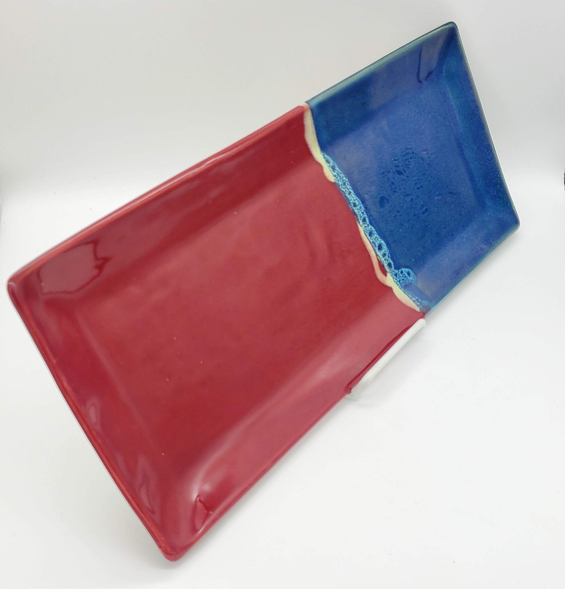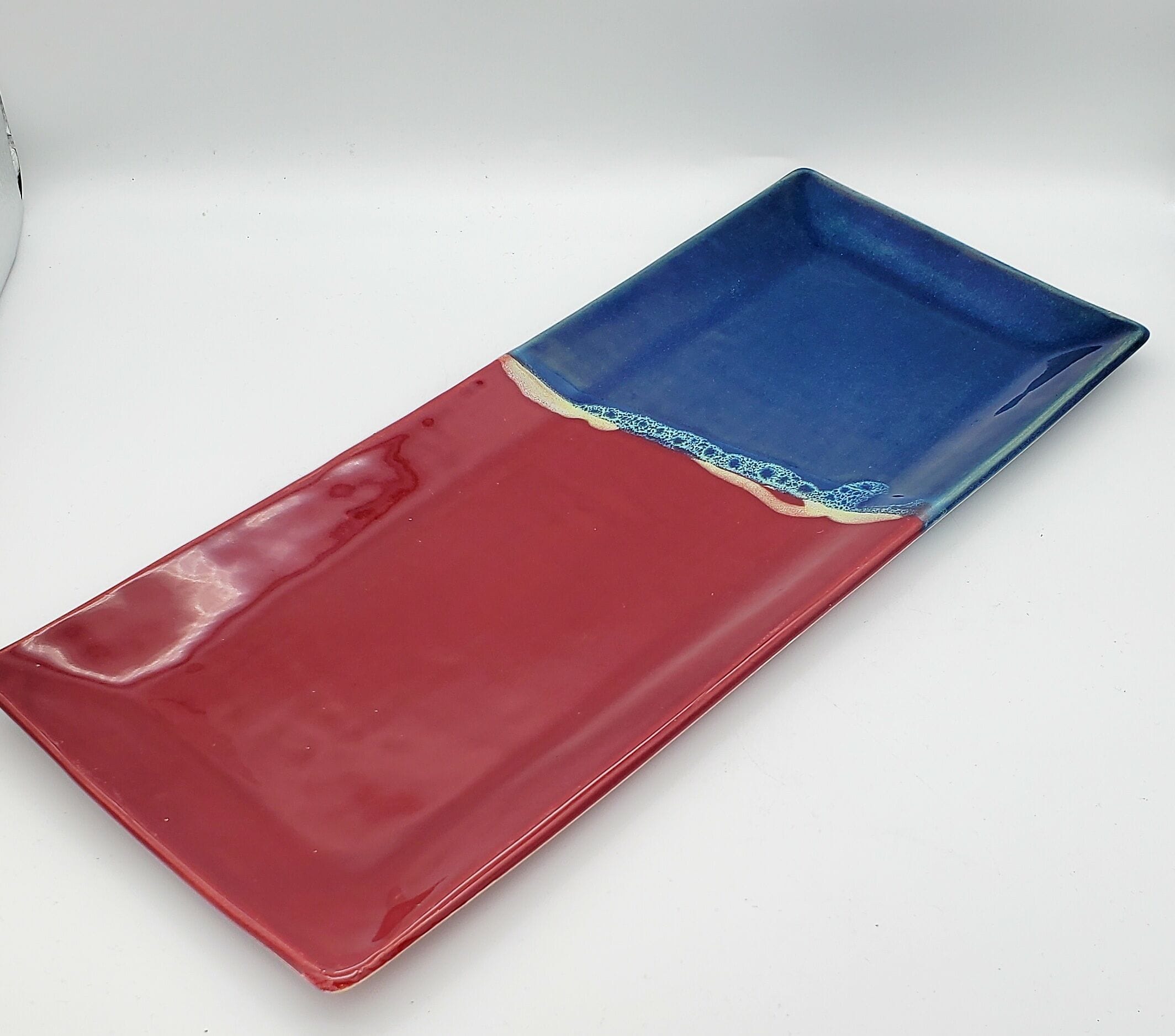 Burgundy/Teal/Yellow Splash Long Rectangle Platter