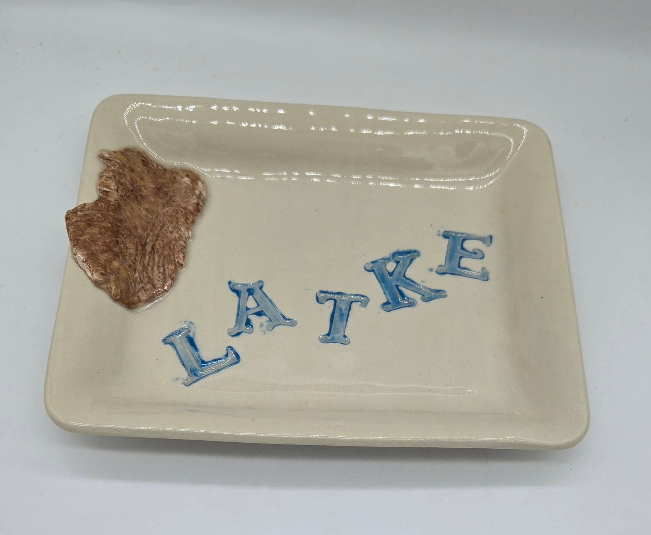 Cream/Blue/Brown Latkes Rectangle Platter quantity
