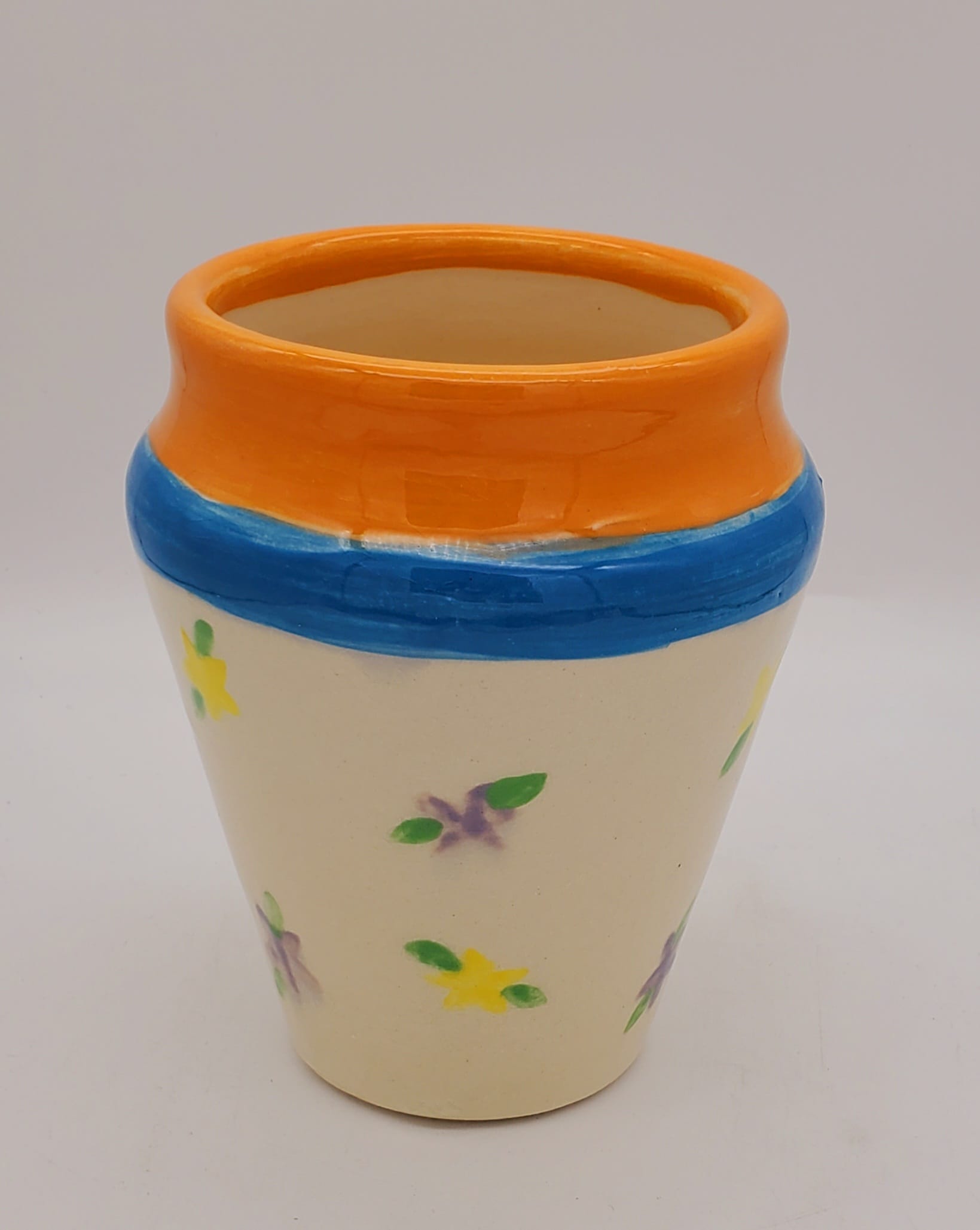 Cream/Blue/Orange Rim & Light Flowers Vase