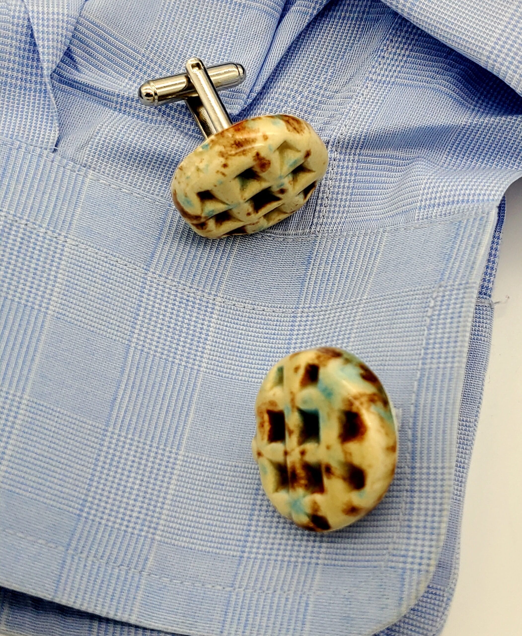 Cream/Brown/Blue Burst Textured Round Cufflinks quantity