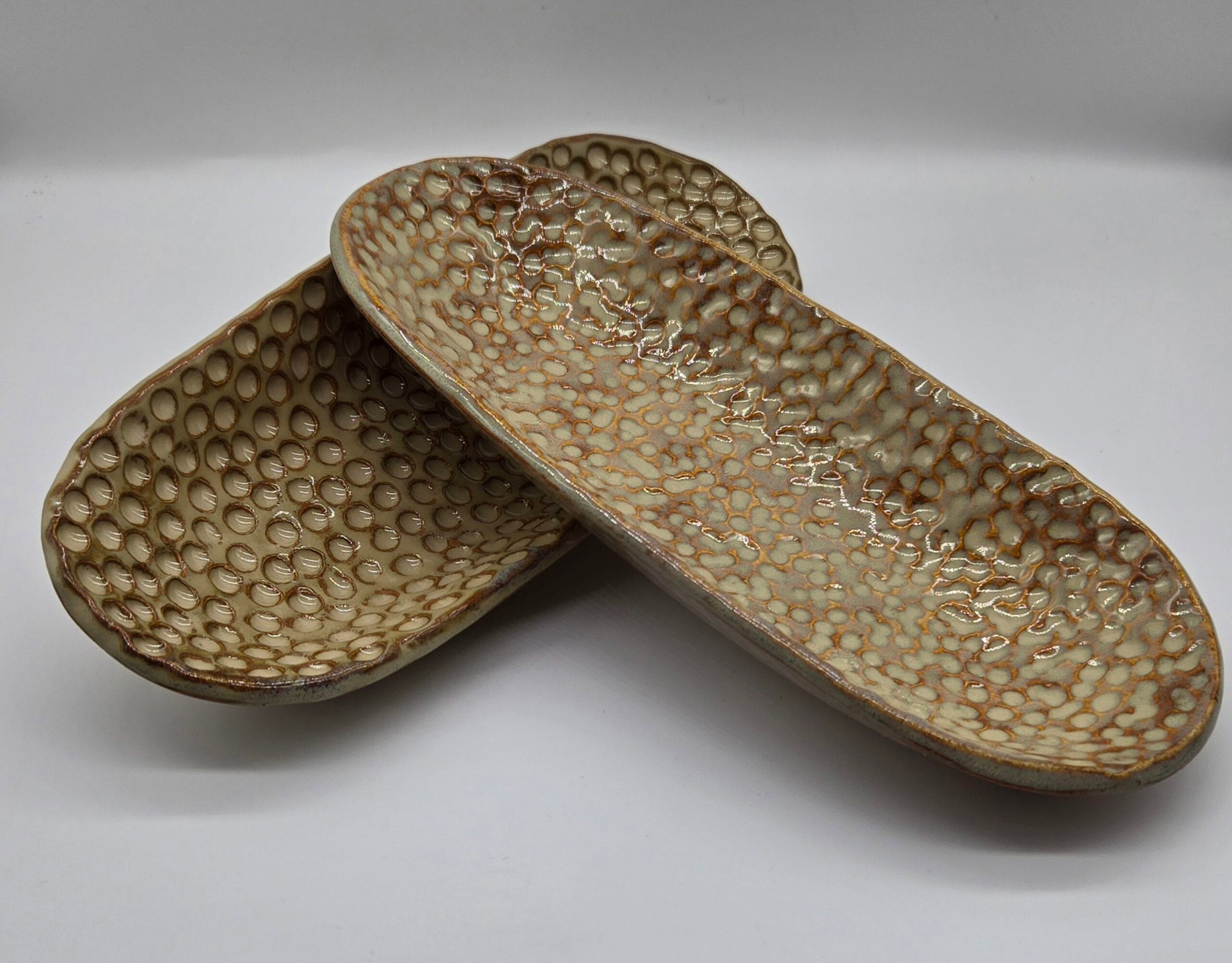 Cream/Brown Oval Textured Dish quantity