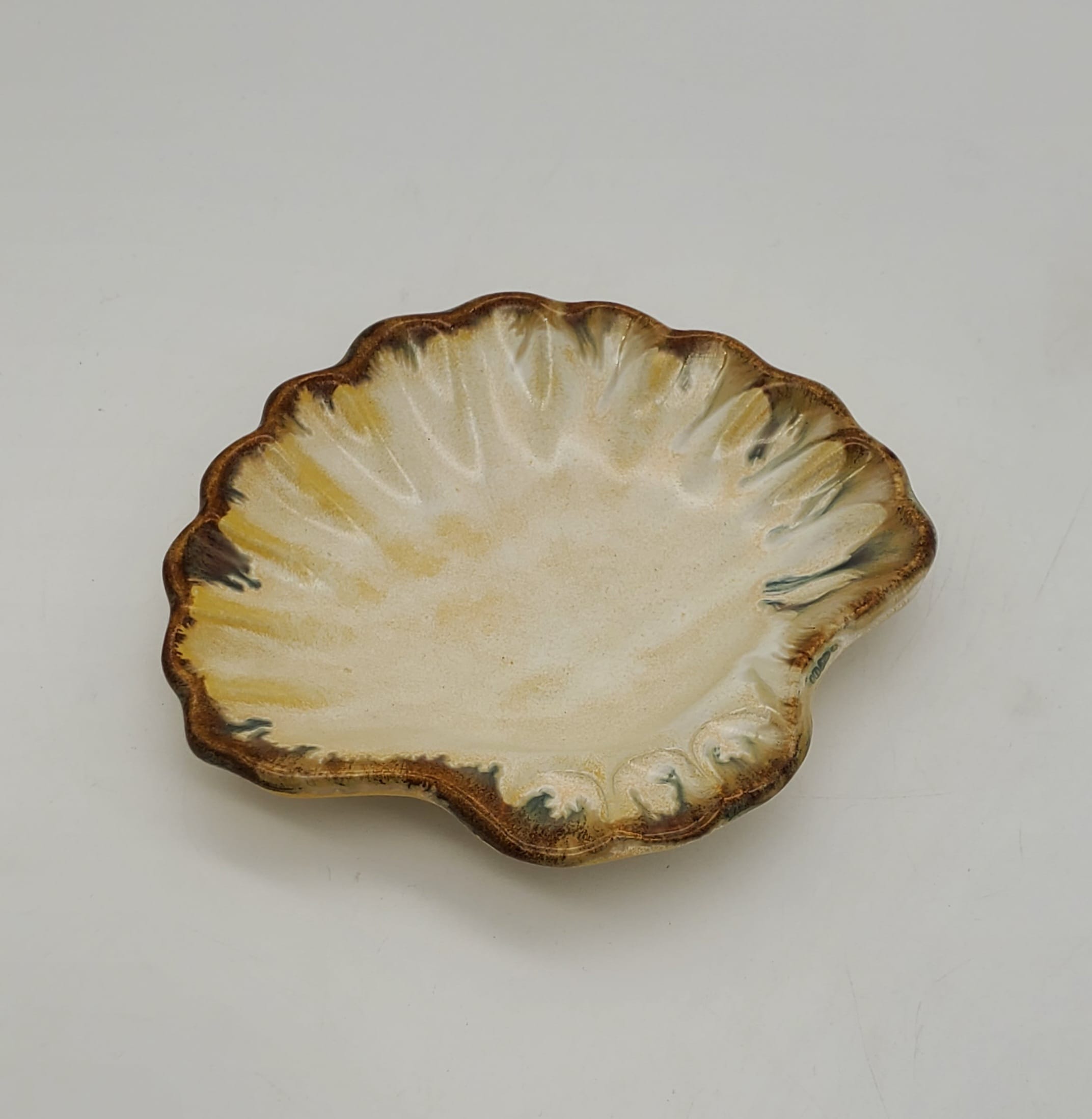 Cream/Brown Rim Shell Dish