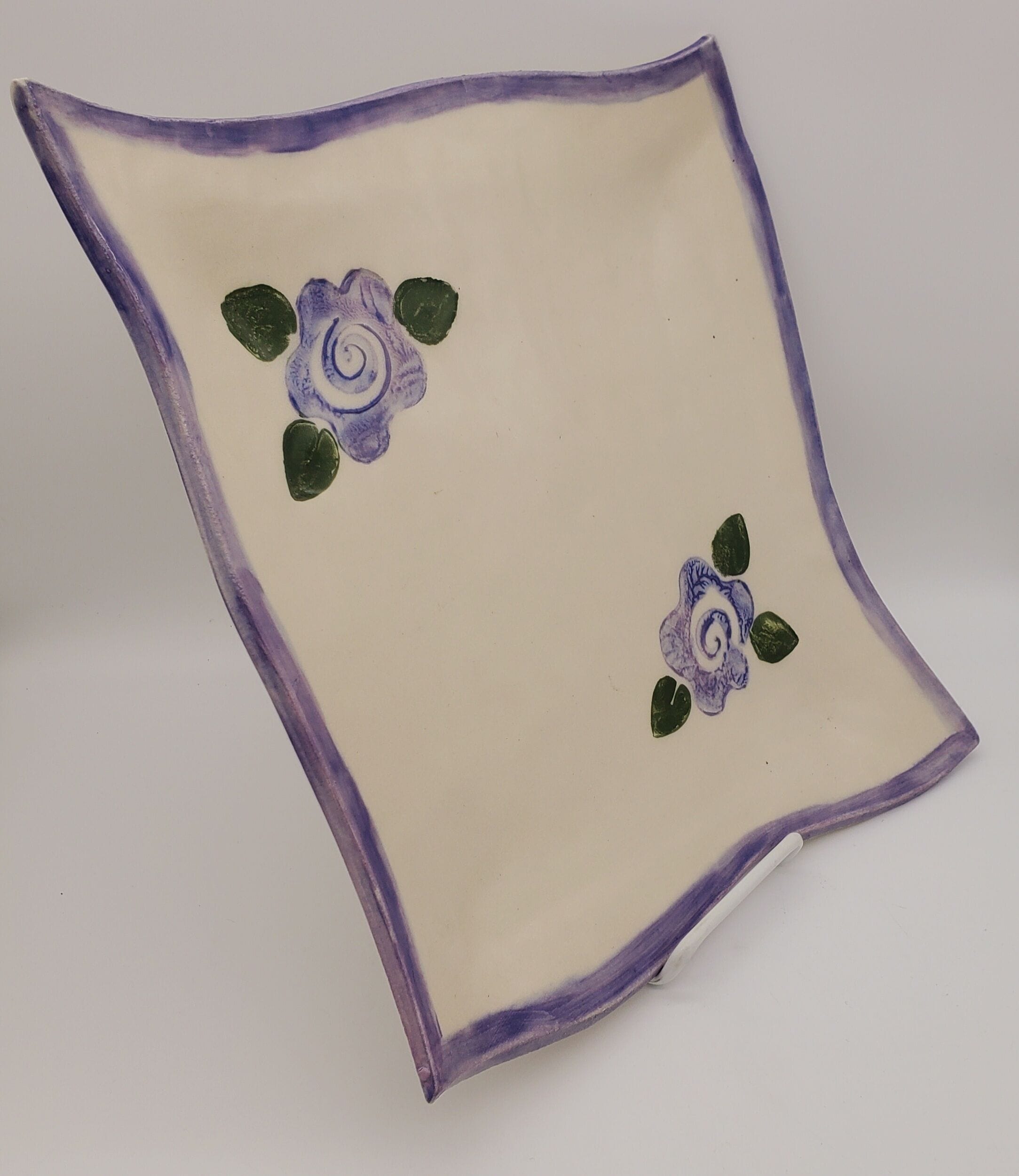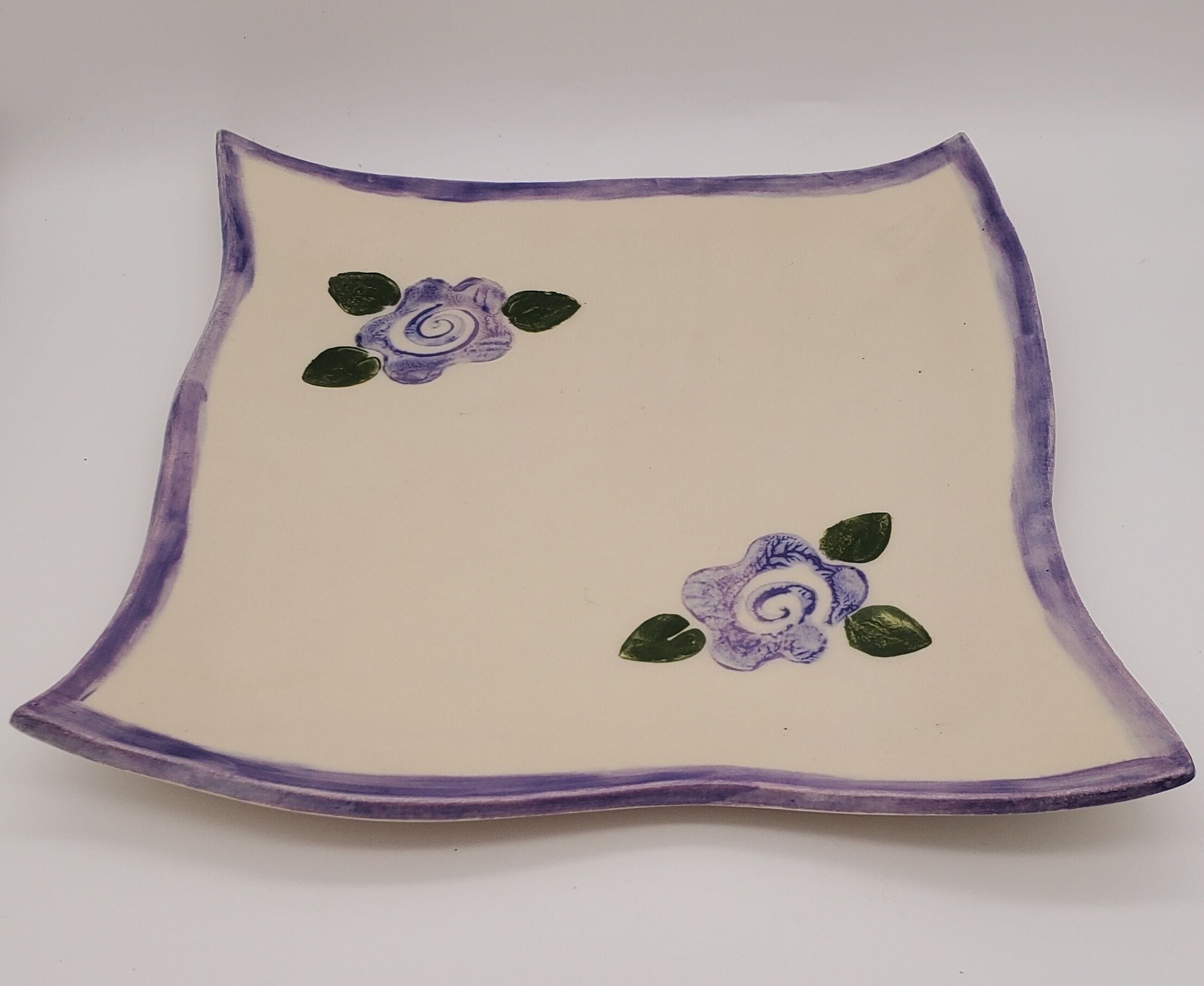 Cream/Purple Flowers/Green Trim Square Platter