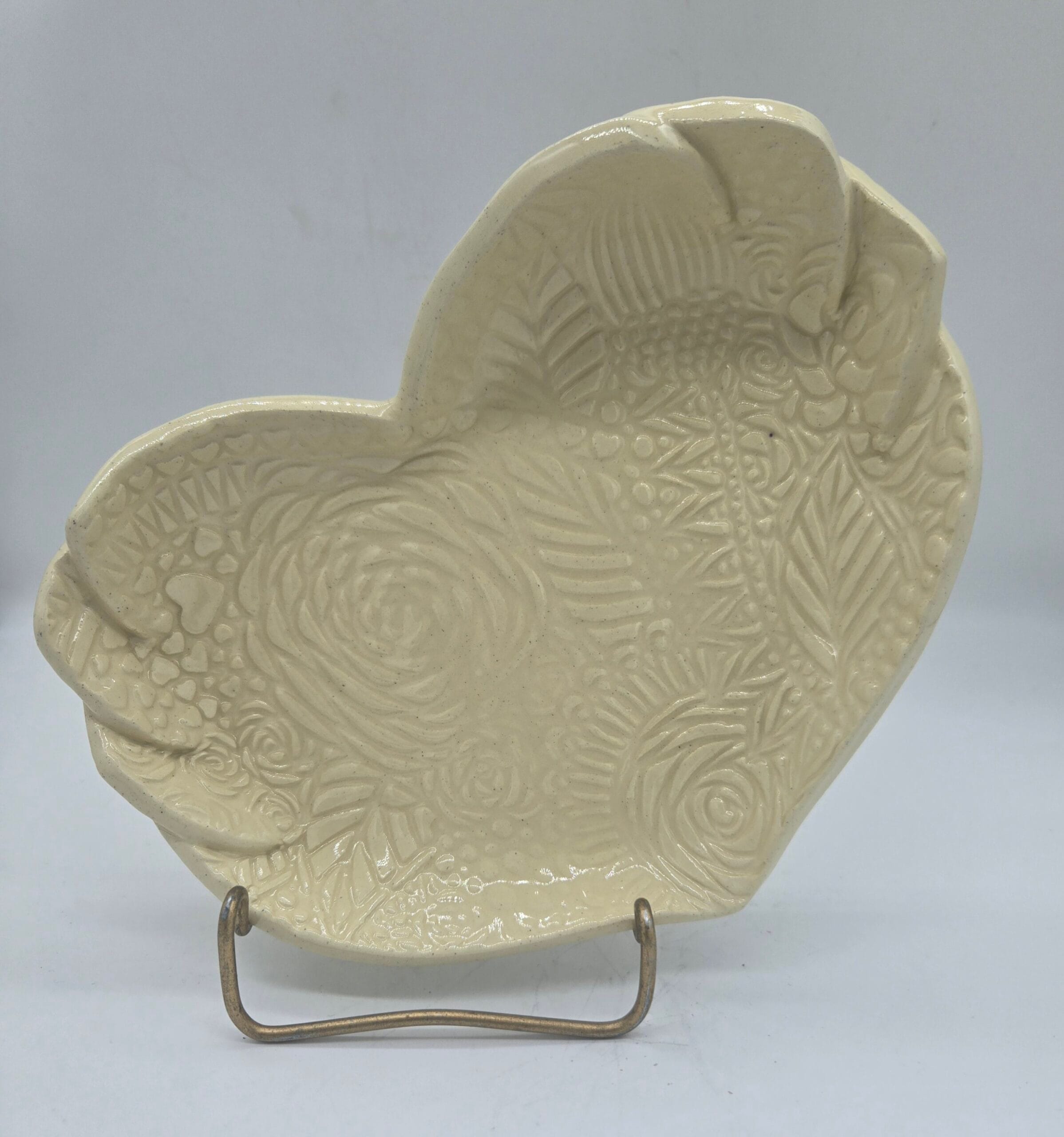 Cream Textured Heart Dish
