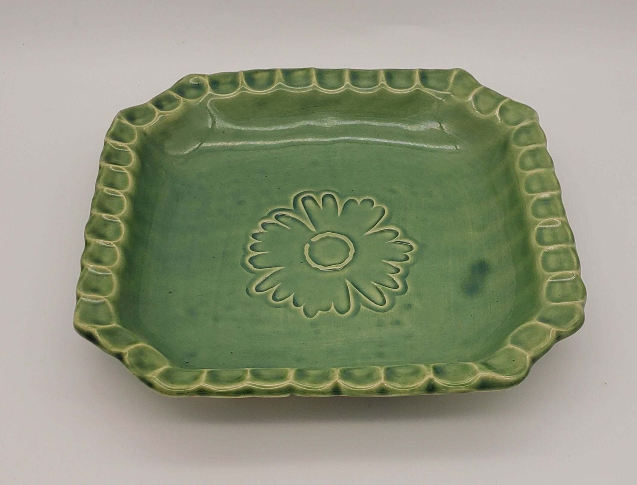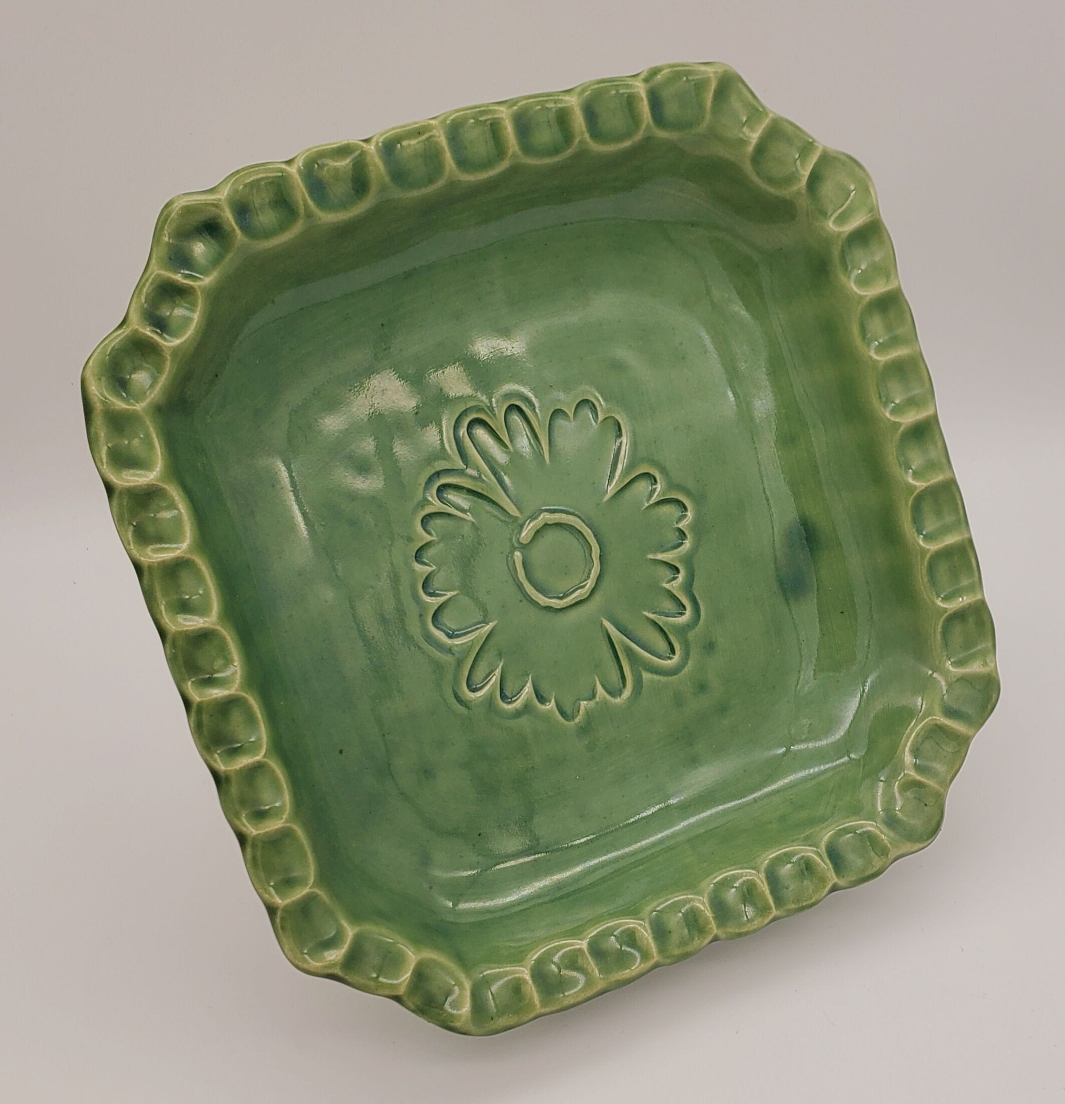 Green Flower Deep Square Dish