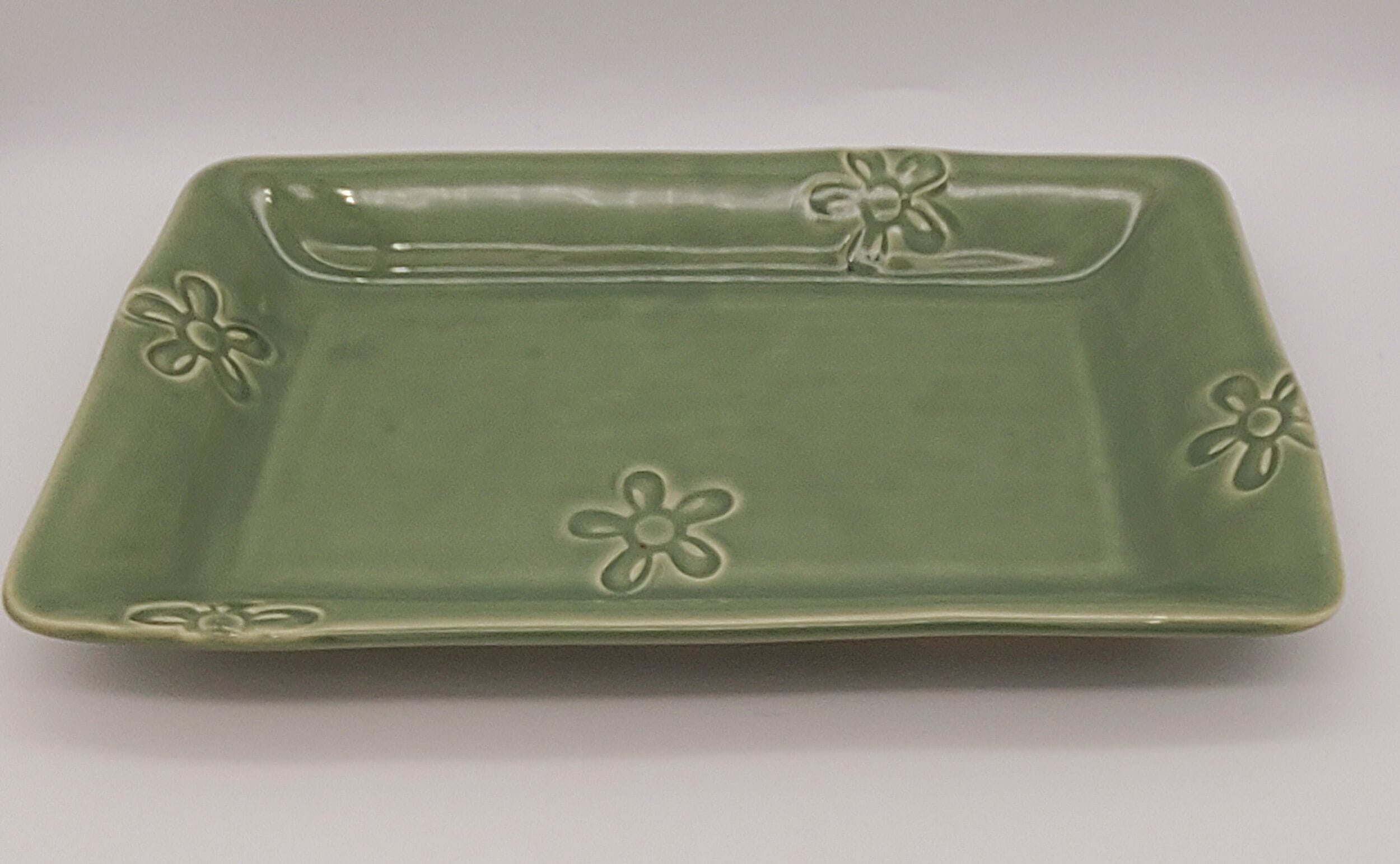 Green Flowers Deep Rectangle Platter quantity