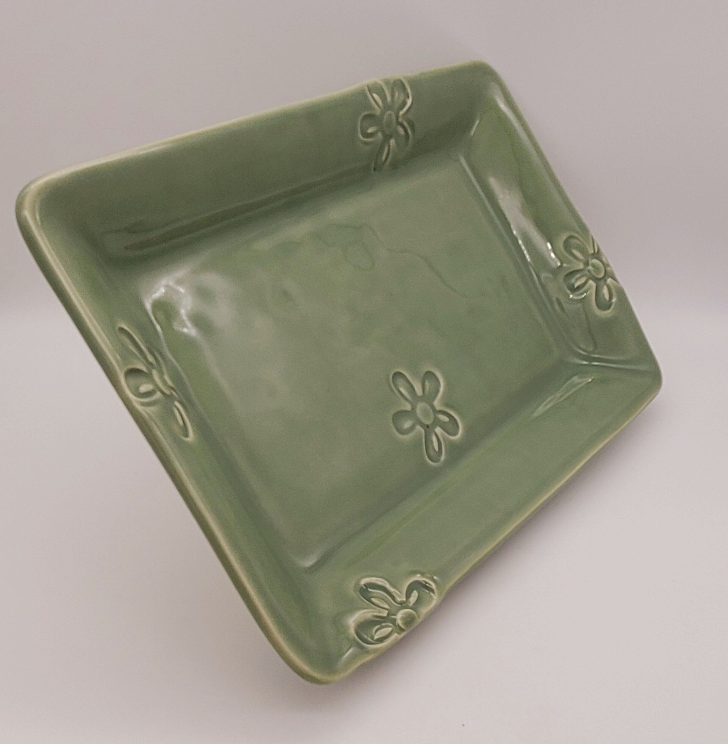 Green Flower Deep Square Dish