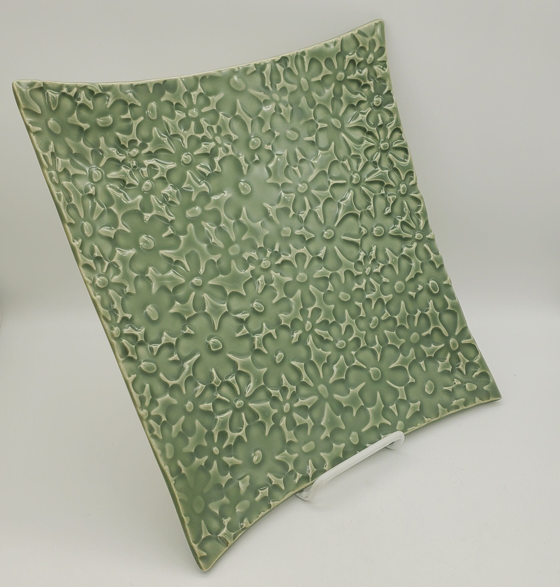 Green Flower Square Platter