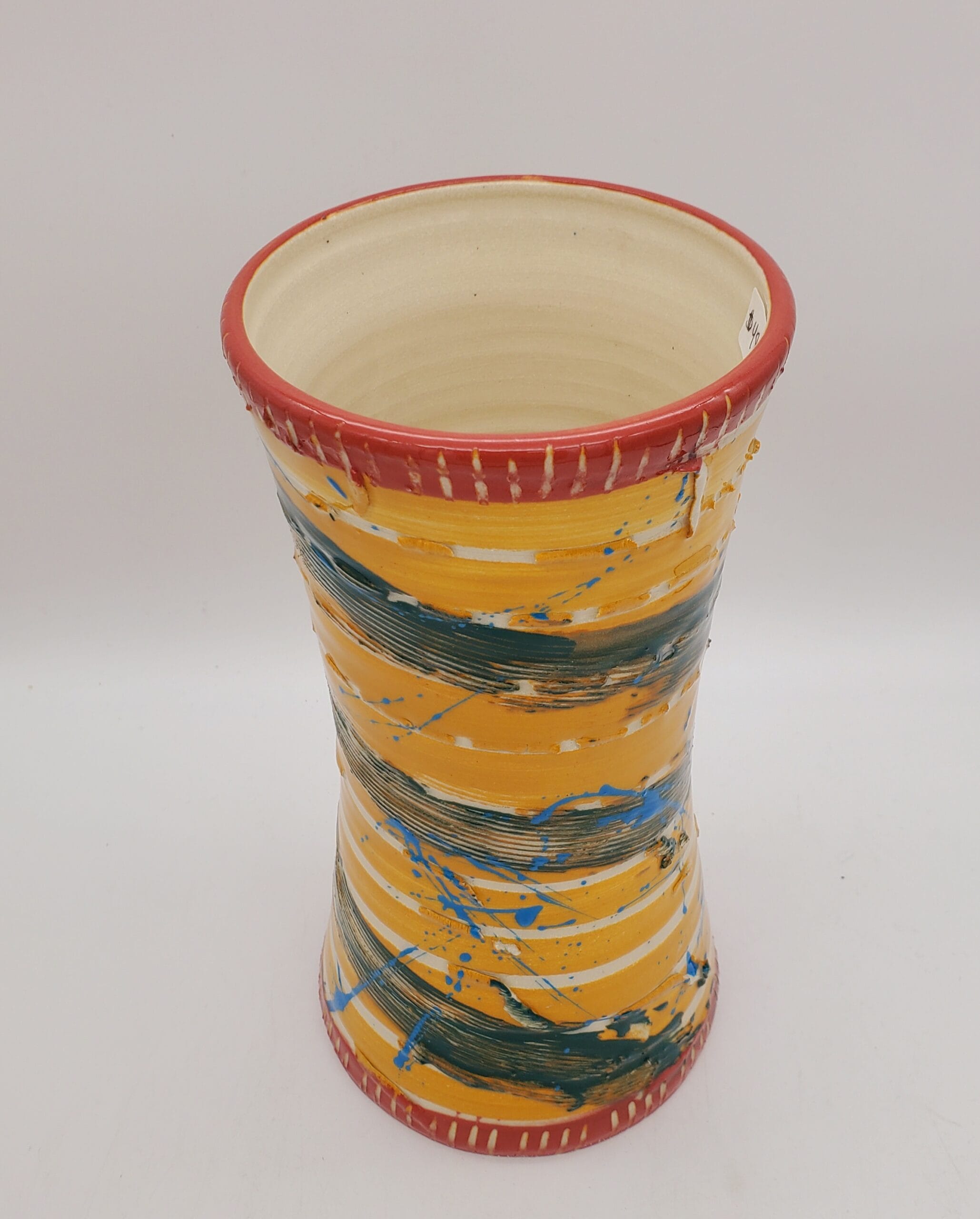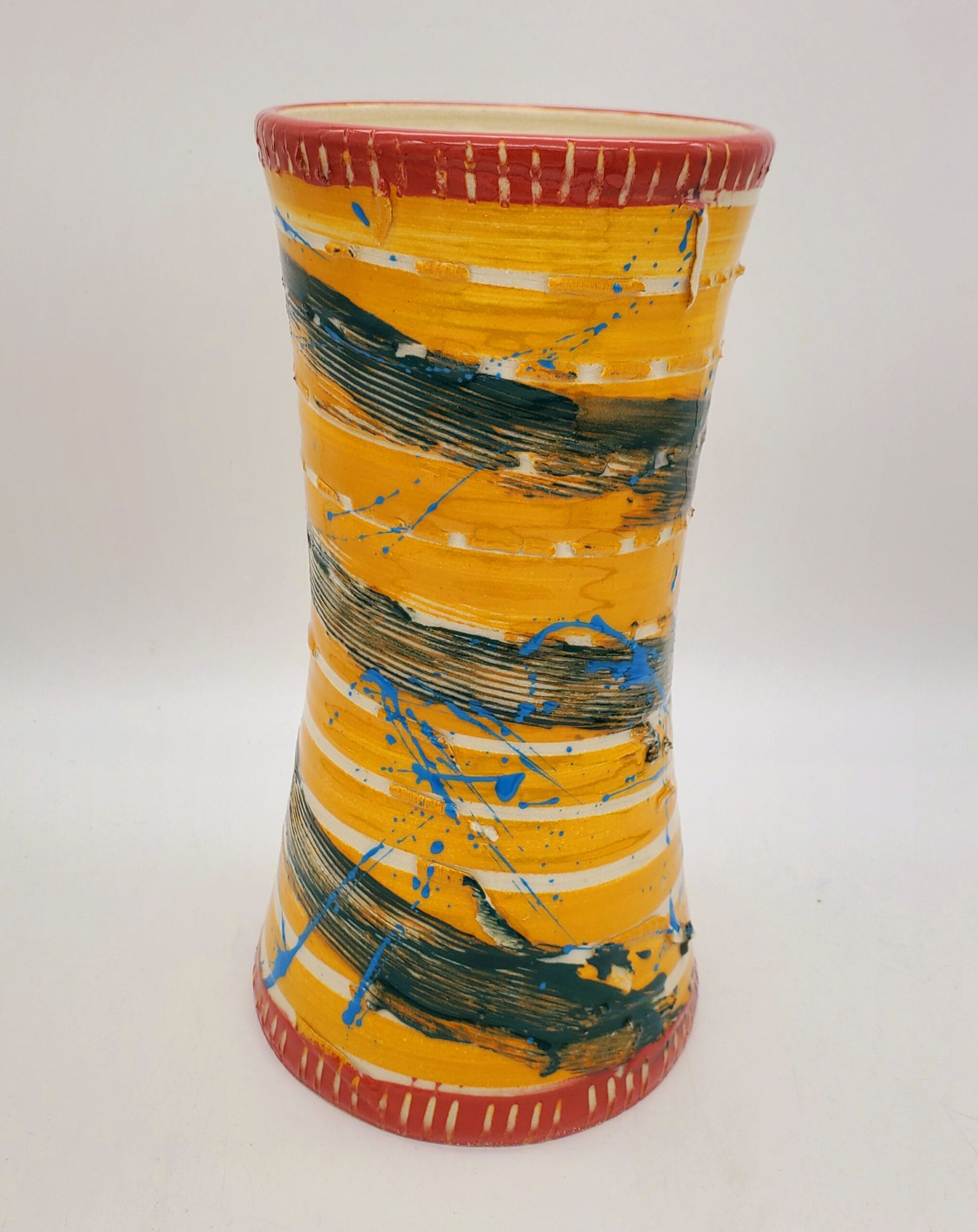 Mustard/Green Swirl/Blue/Red Trim Vase