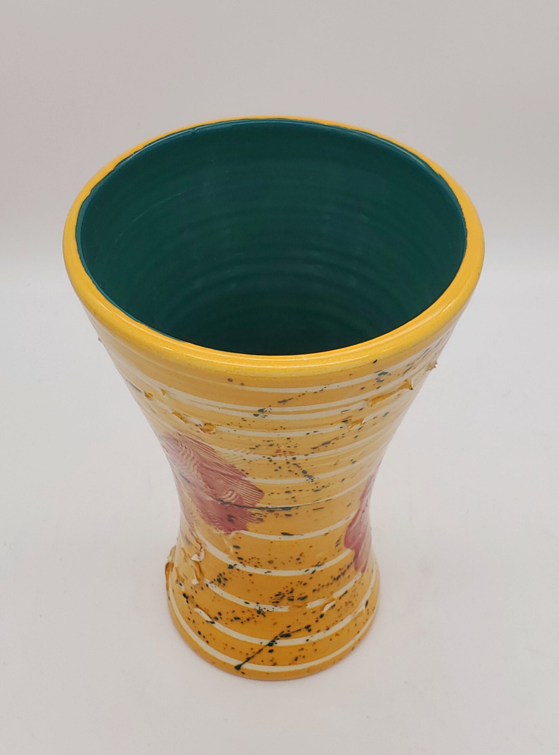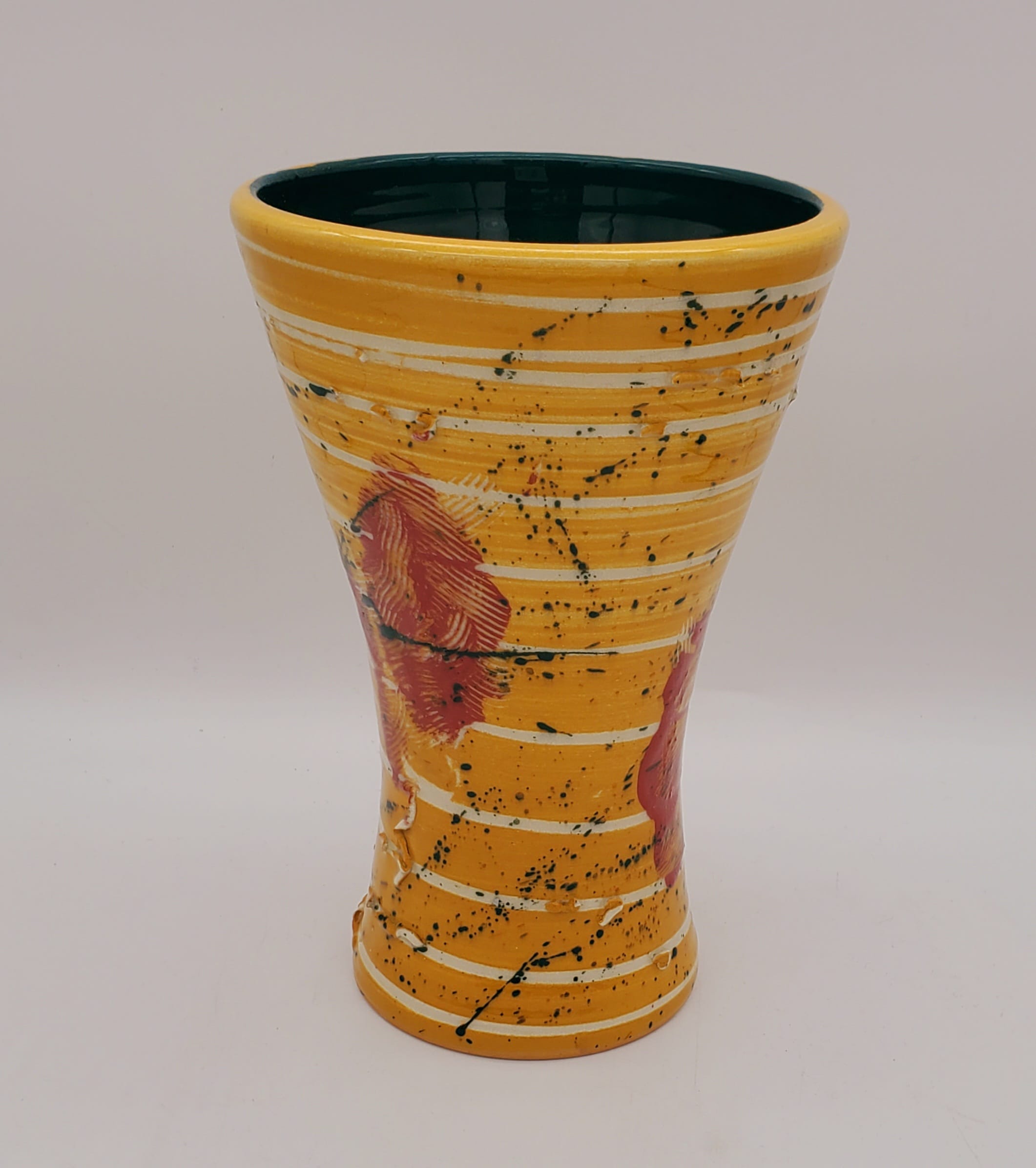 Mustard/Green Swirl/Blue/Red Trim Vase