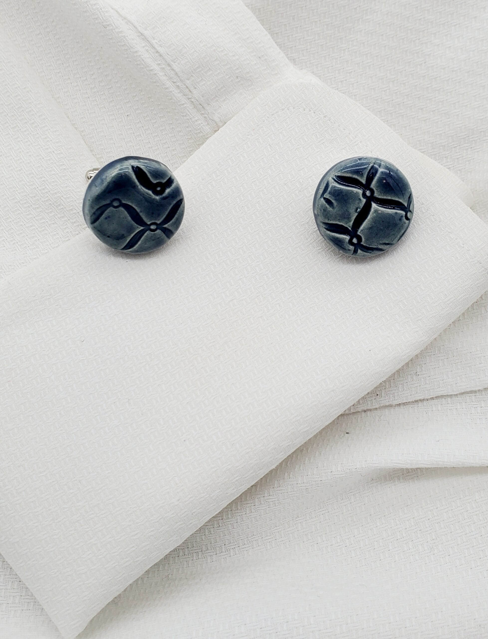 Navy Textured Round Cufflinks