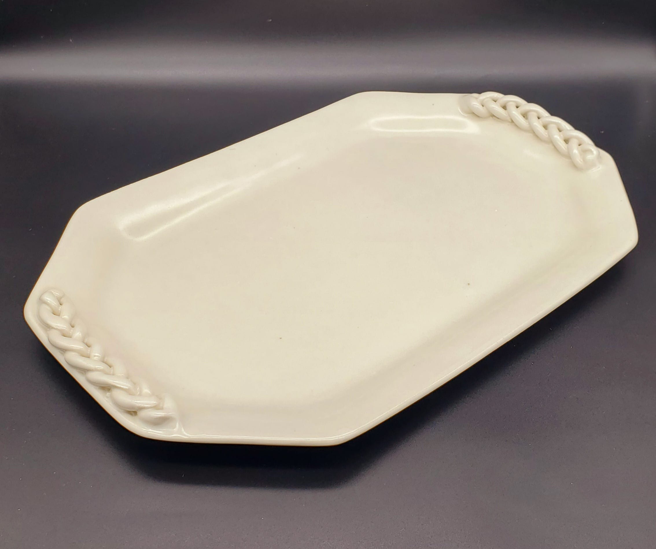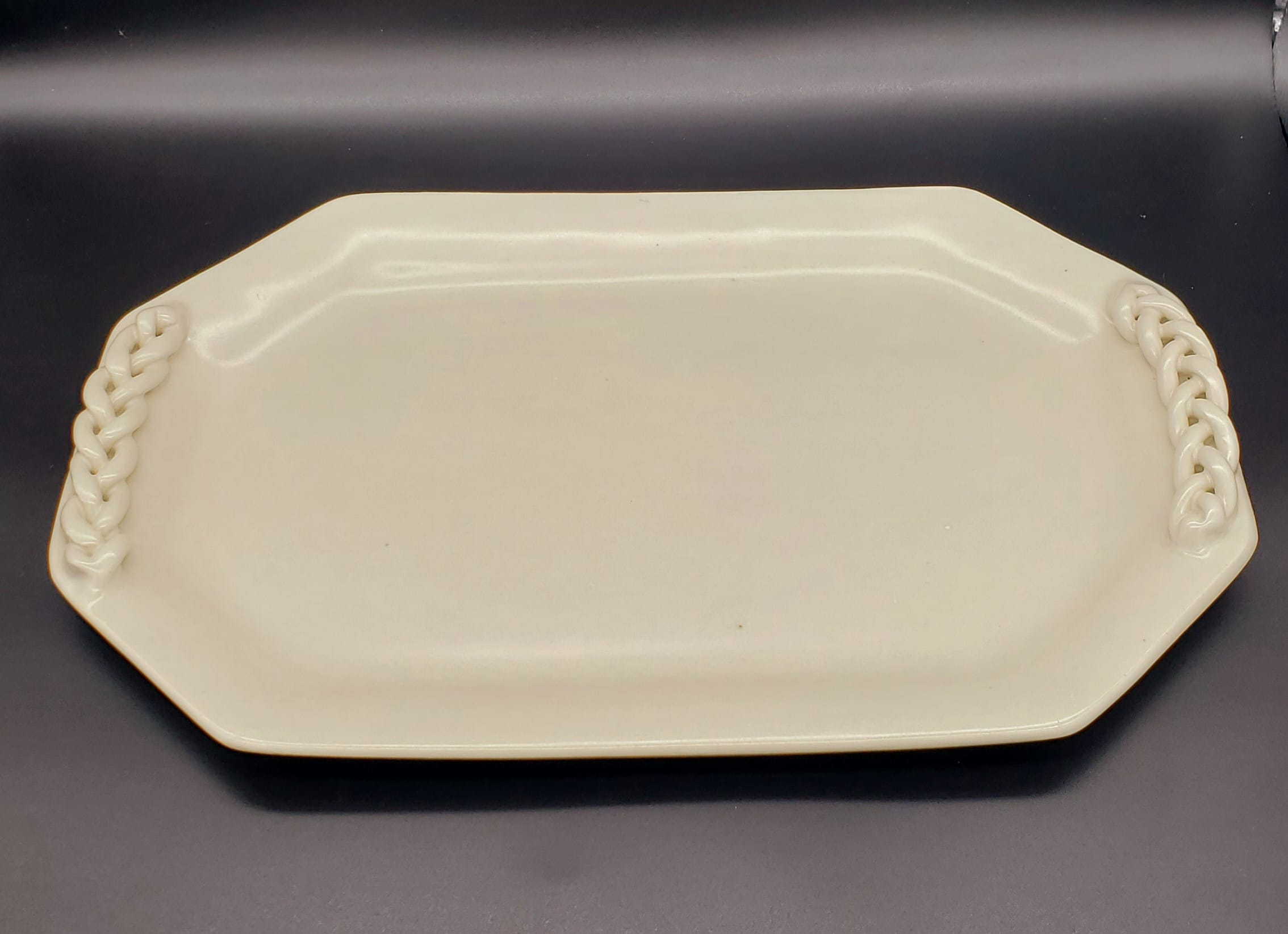 Octagon White Platter with Braided Handles