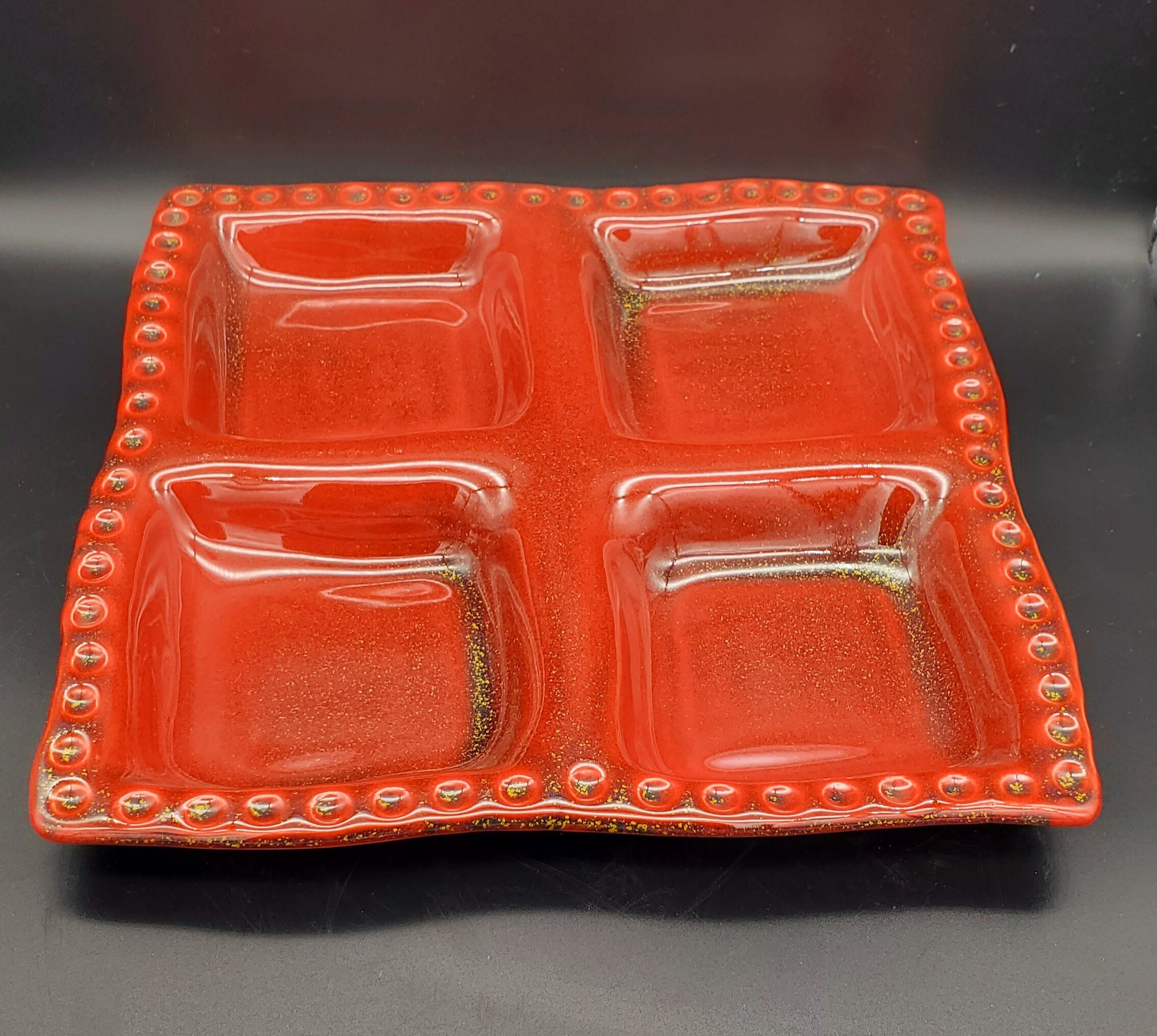 Red/Gold Speckle Airbrushed 4 Divider Dish