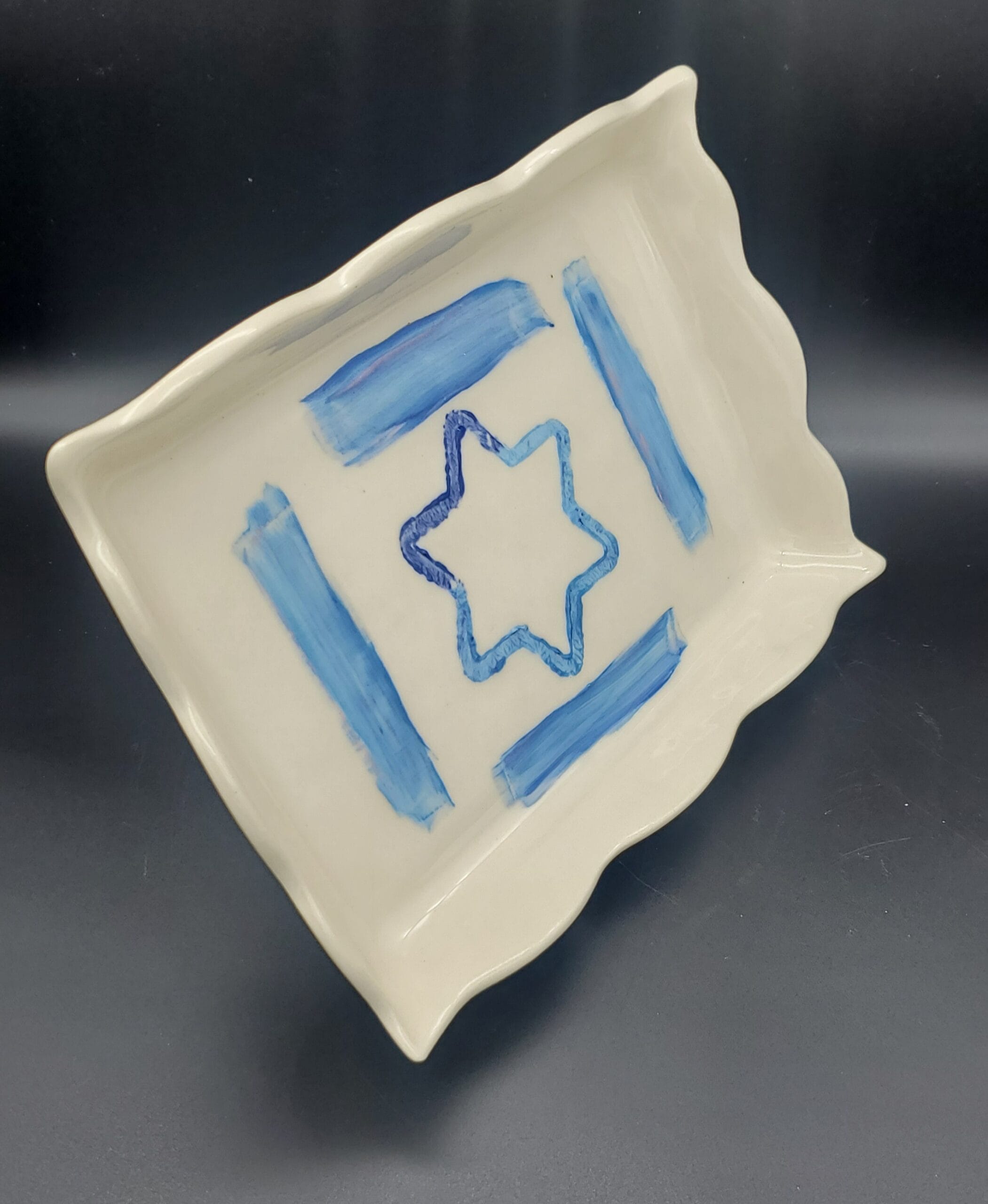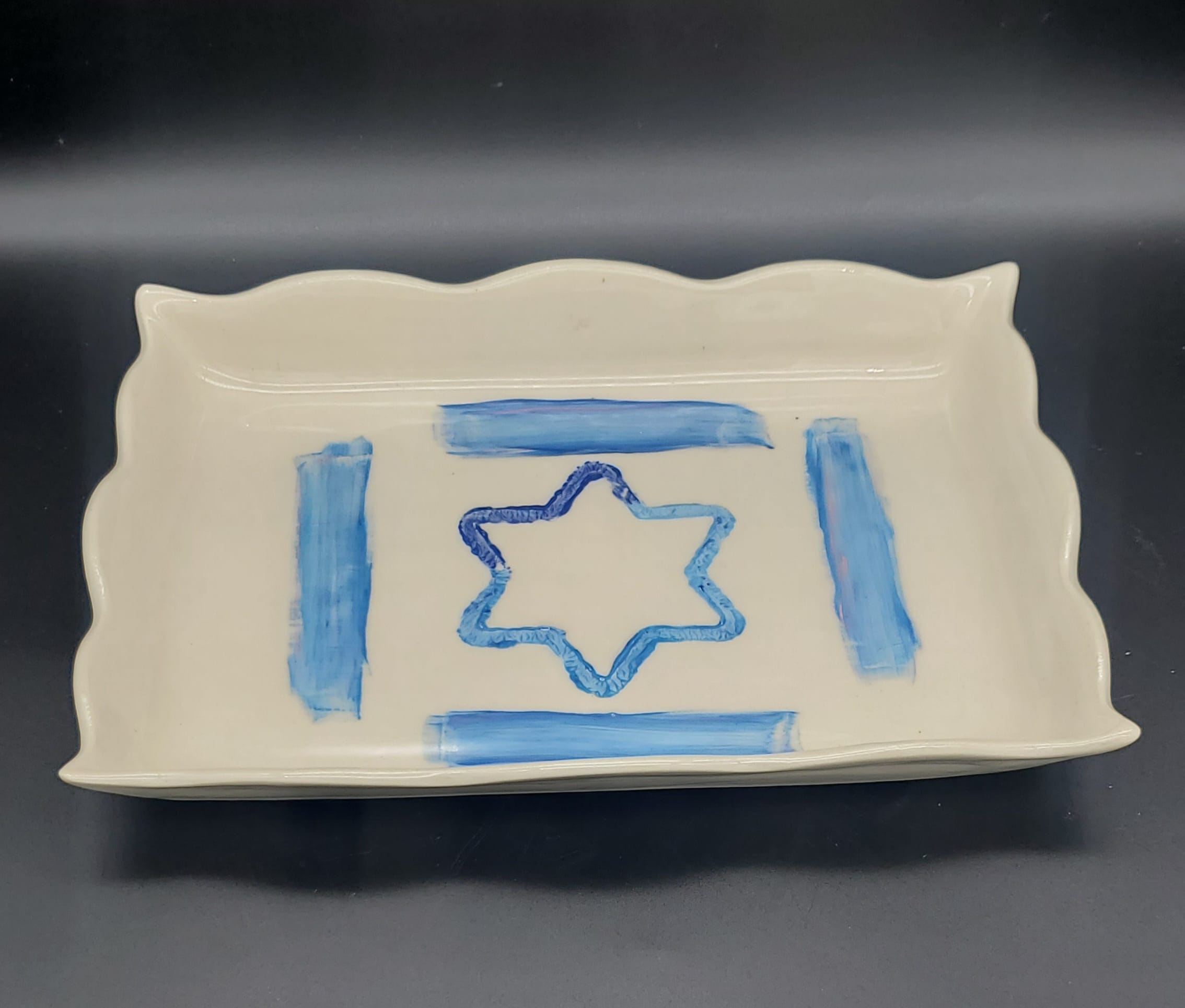Blue/Burgundy/Yellow Splash Ruffle Edge Rectangle Dish