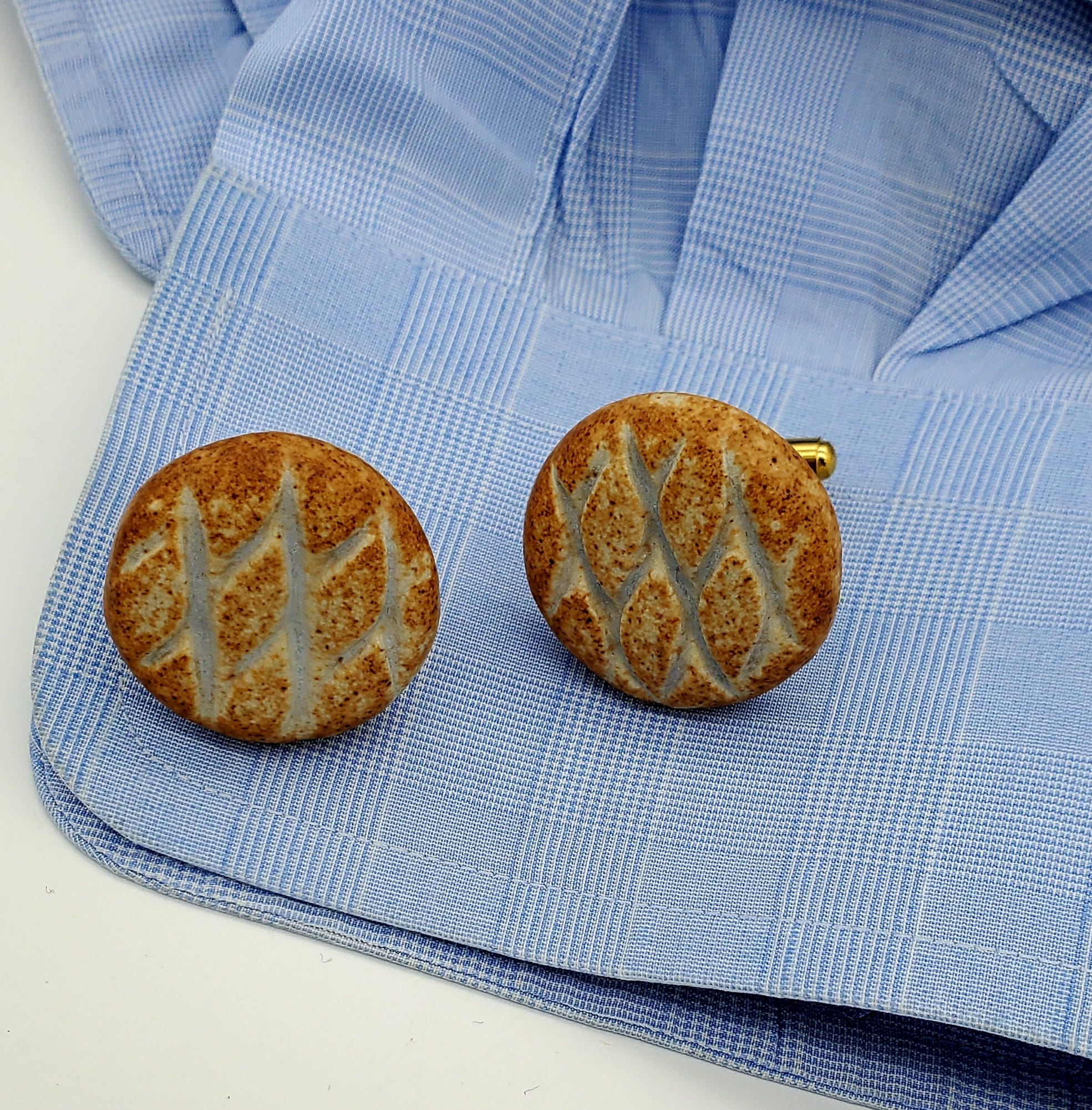 Stoney Brown/Gray Textured Round Cufflinks quantity