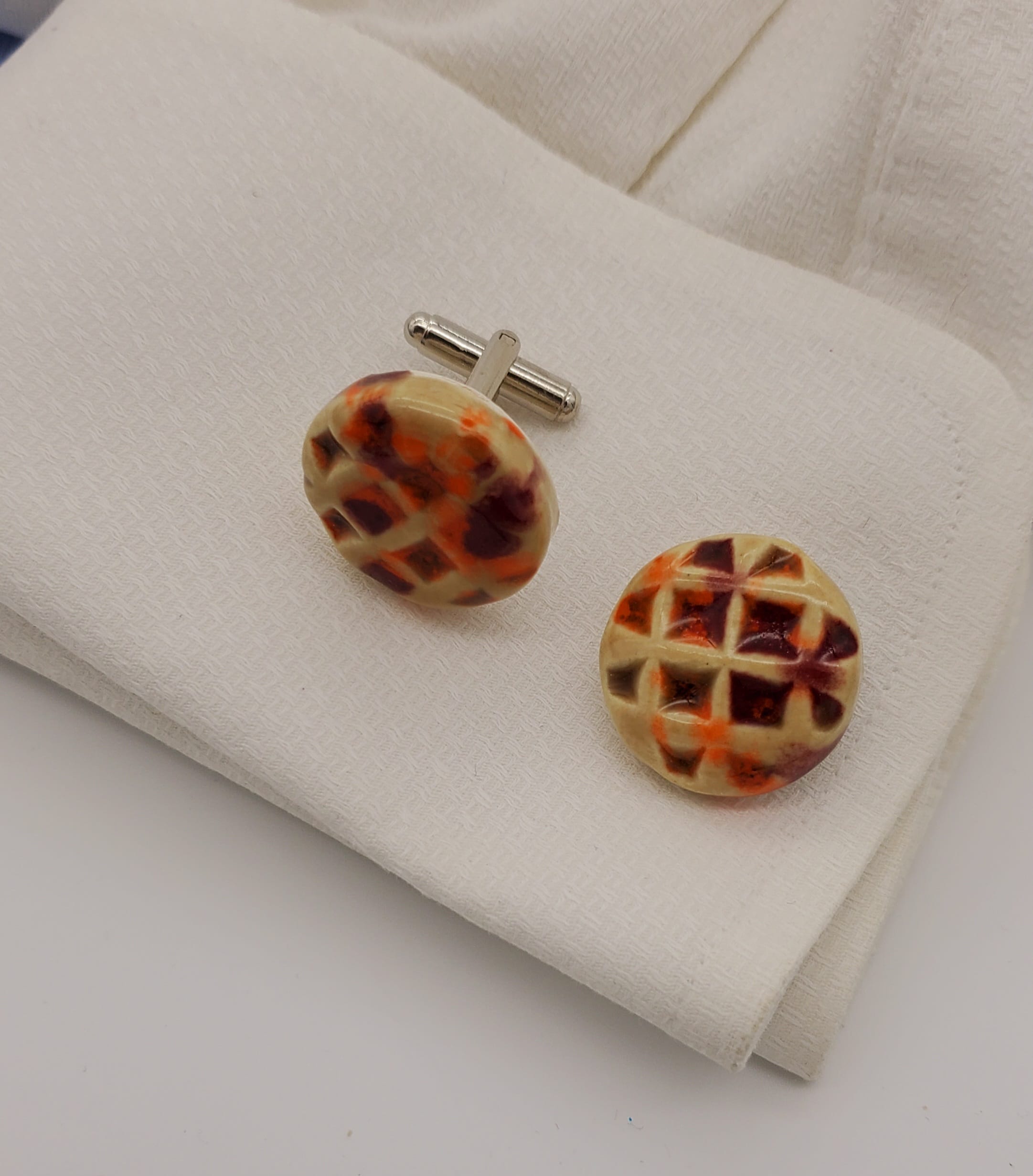 Tan with Red/Orange Burst Textured Round Cufflinks