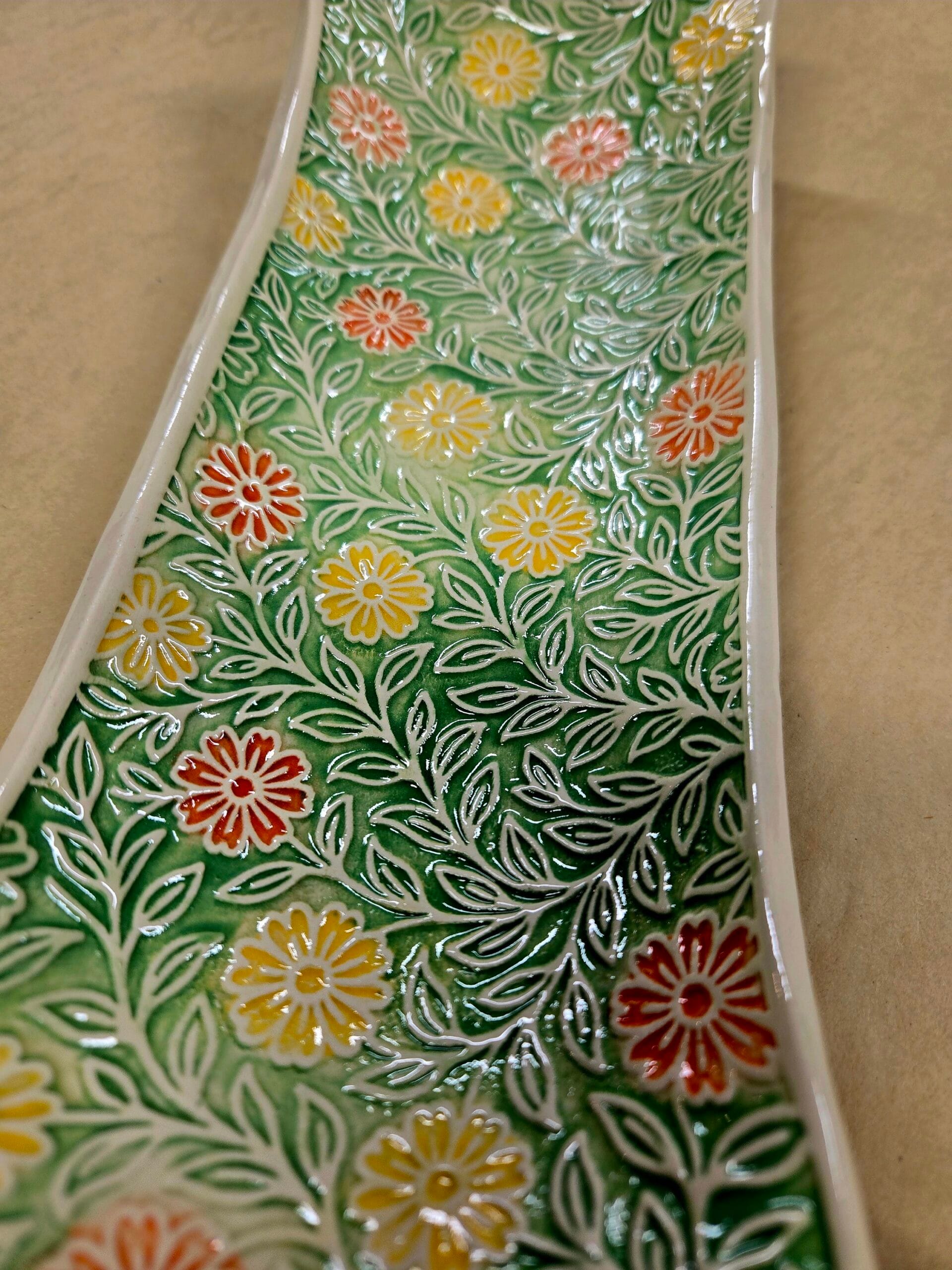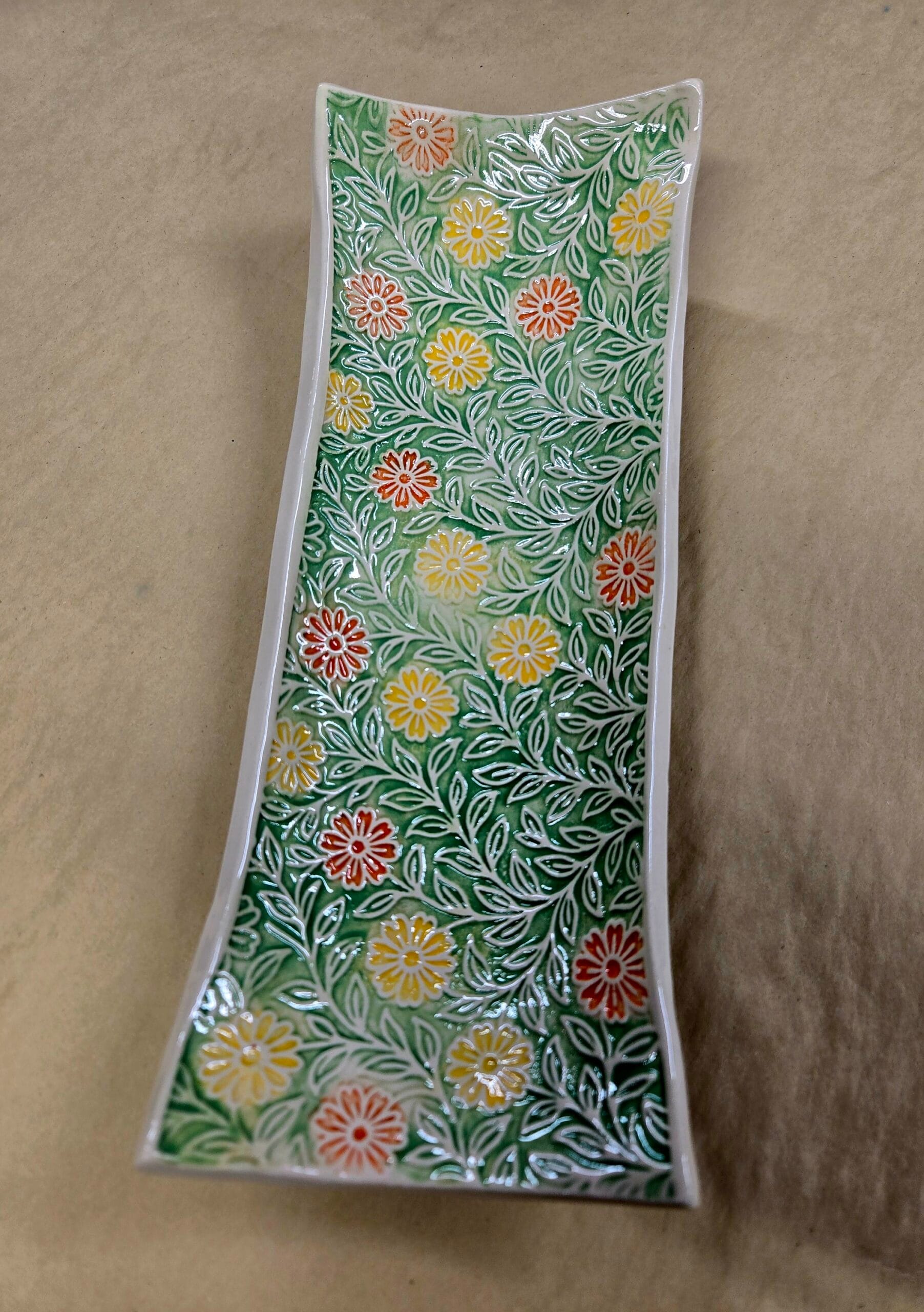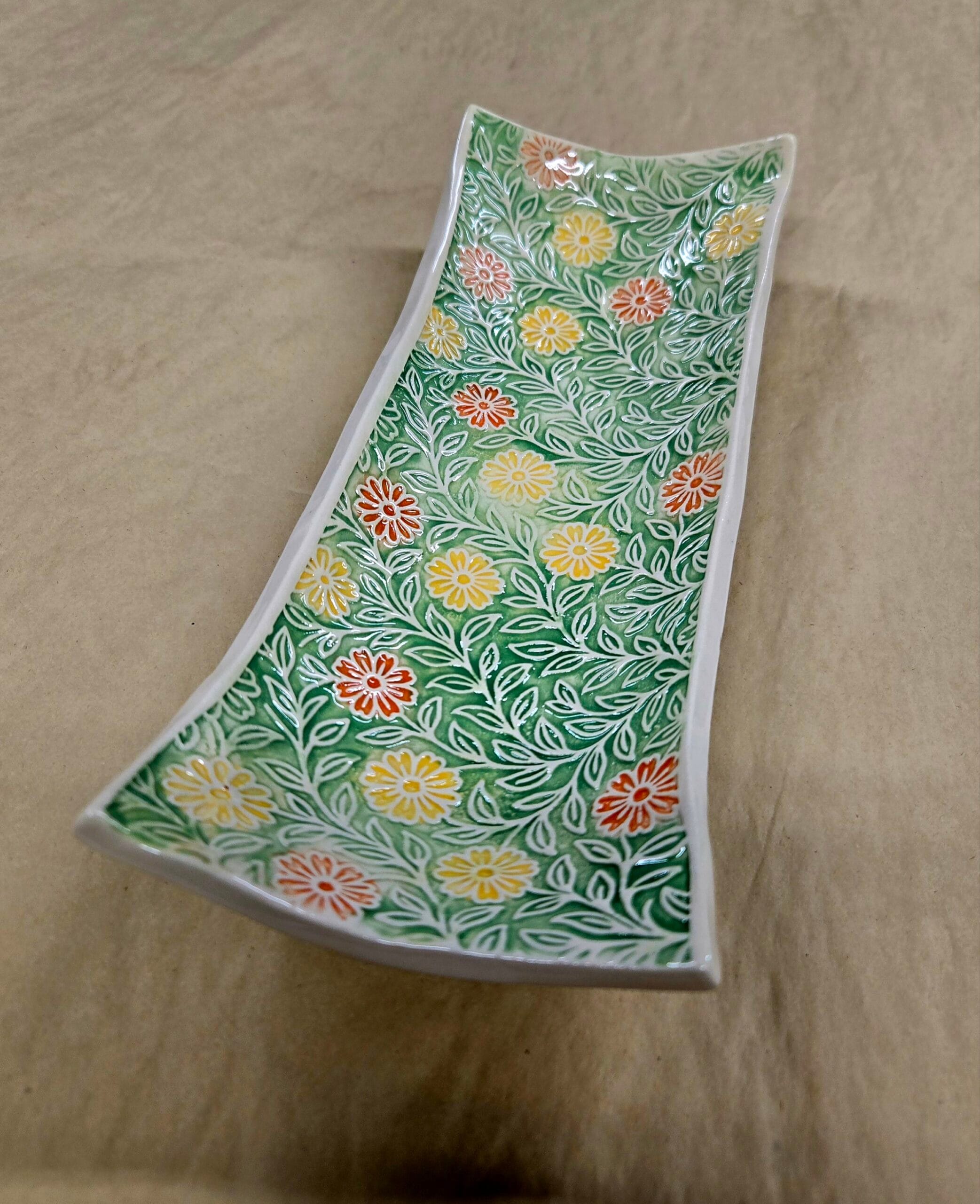 Yellow/Orange/Green Floral Textured Dish